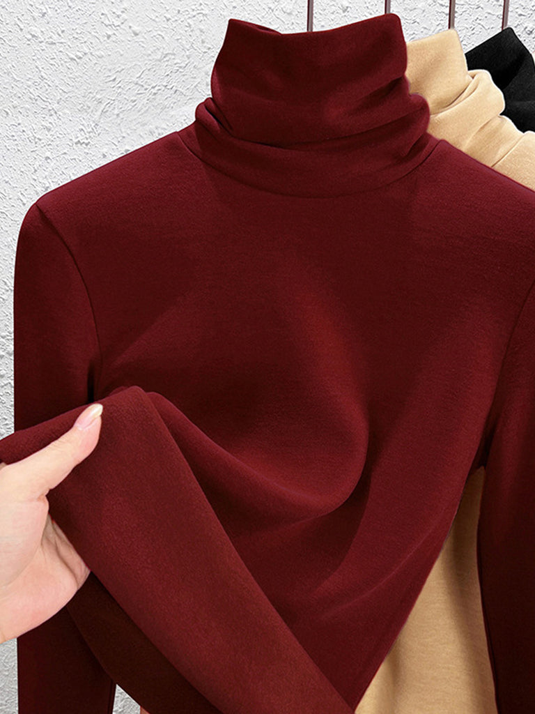 Women Casual Winter Pure Color Turtleneck Base Blouse