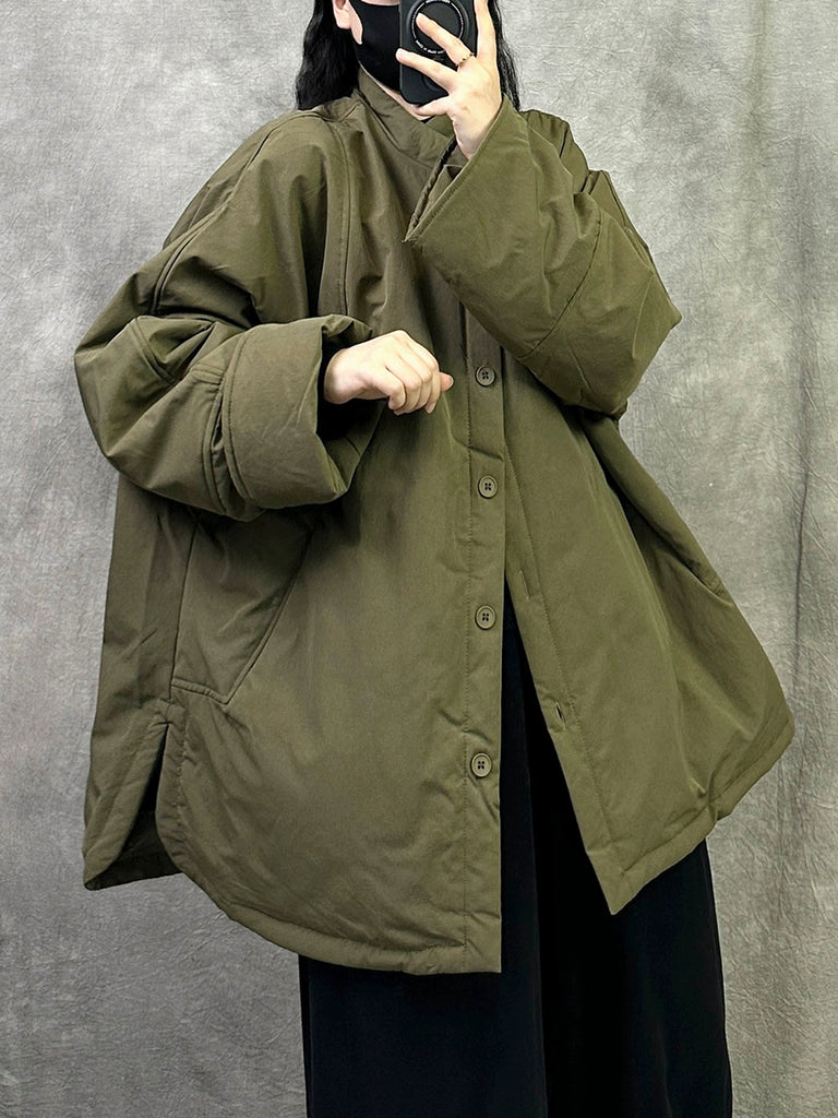 Women Vintage Winter Fleece Linen Stand Collar Coat