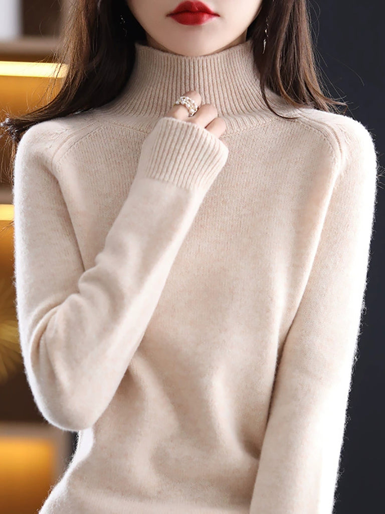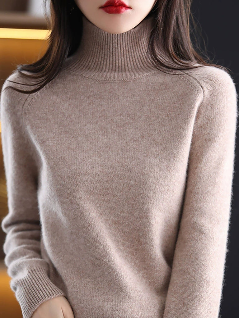 Women Autumn Casual Pure Color Turtleneck Sweater