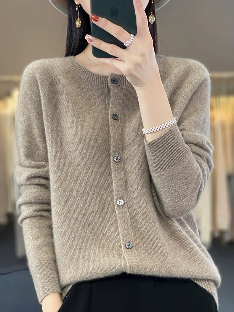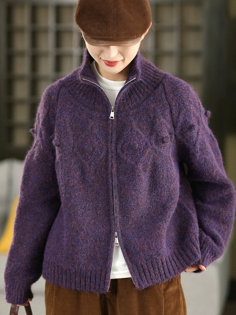 Women Autumn Retro Pure Color Stand Collar Sweater Coat