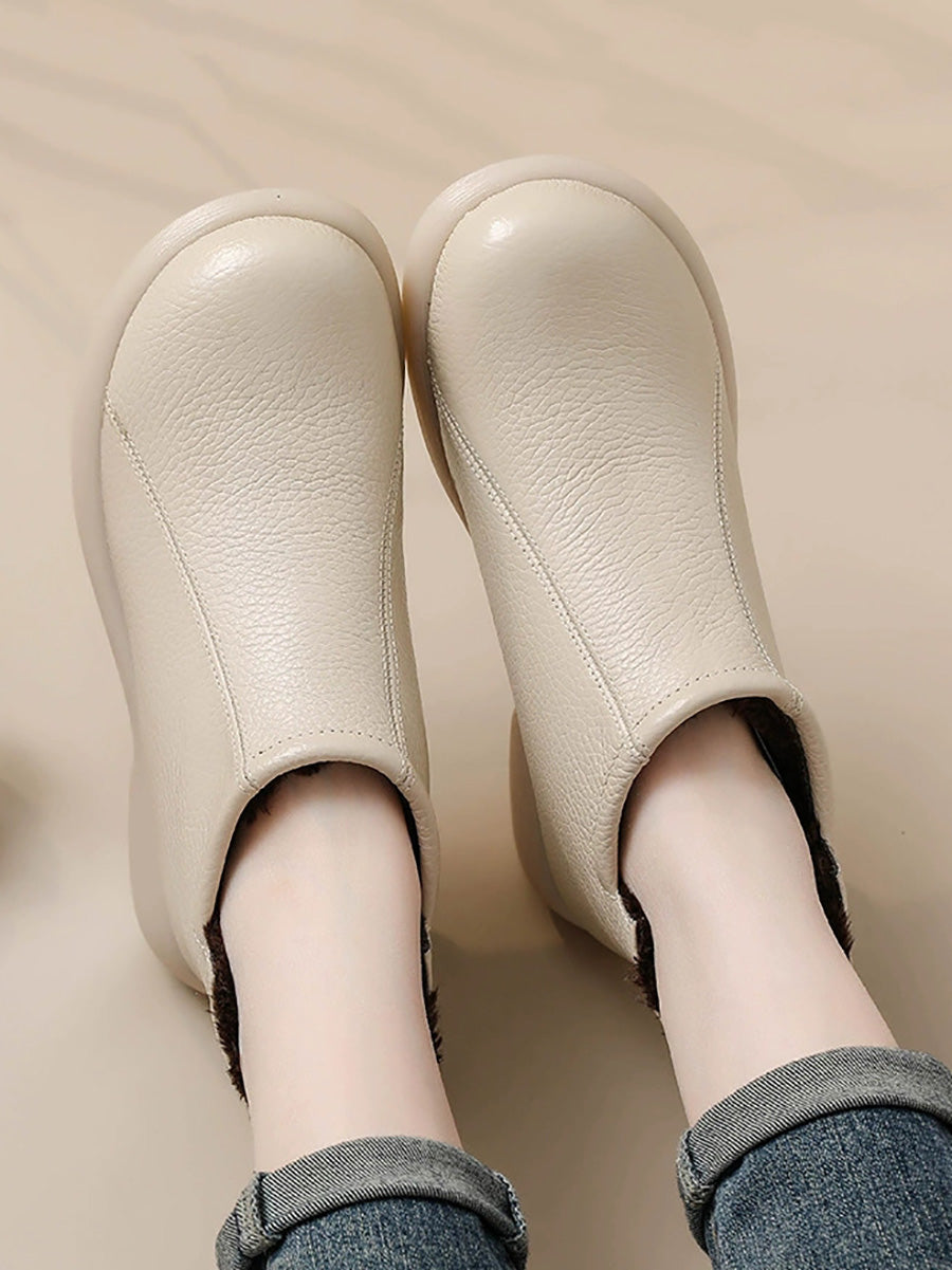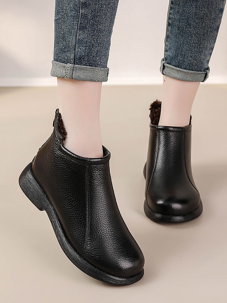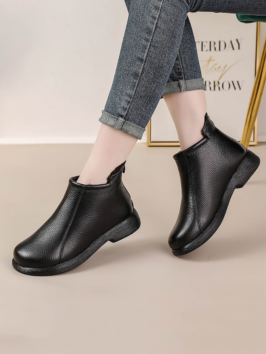 Women Winter Stylish Genuine Leather Low Heel Boots