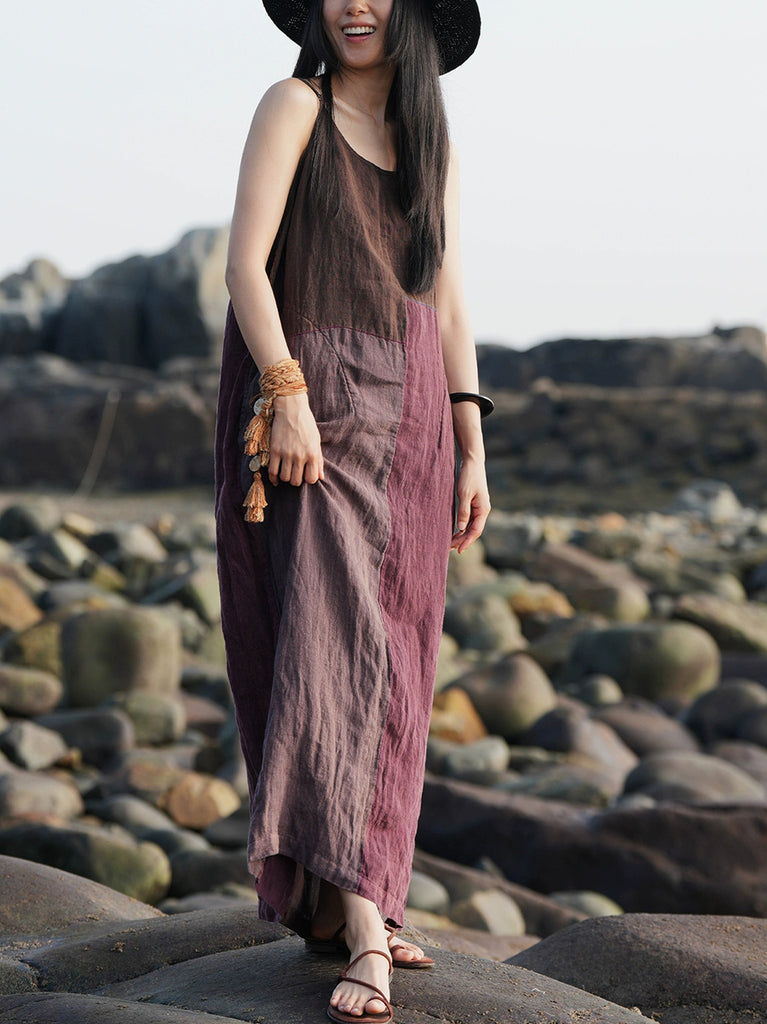 Plus Size Women Summer Vintage Patchwork 100%Linen Vest Dress