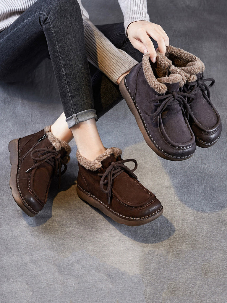Women Vintage Genuine Leather Fleece-lined Ankle Boots
