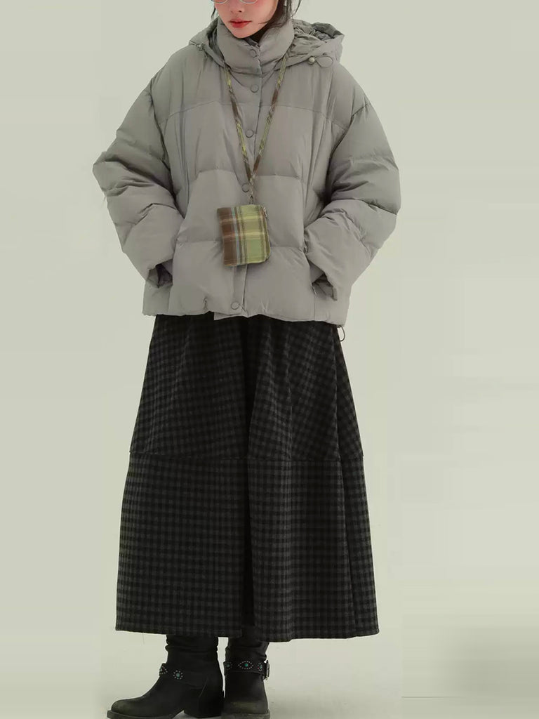 Plus Size Women Autumn Plaid Cotton A-Shape Skirt