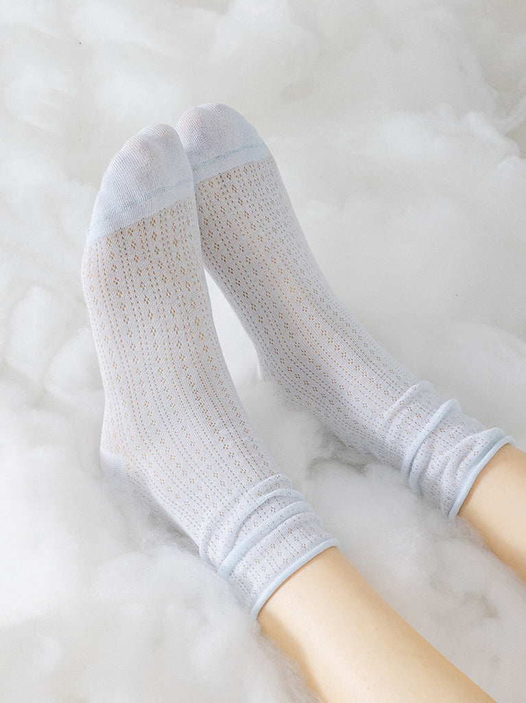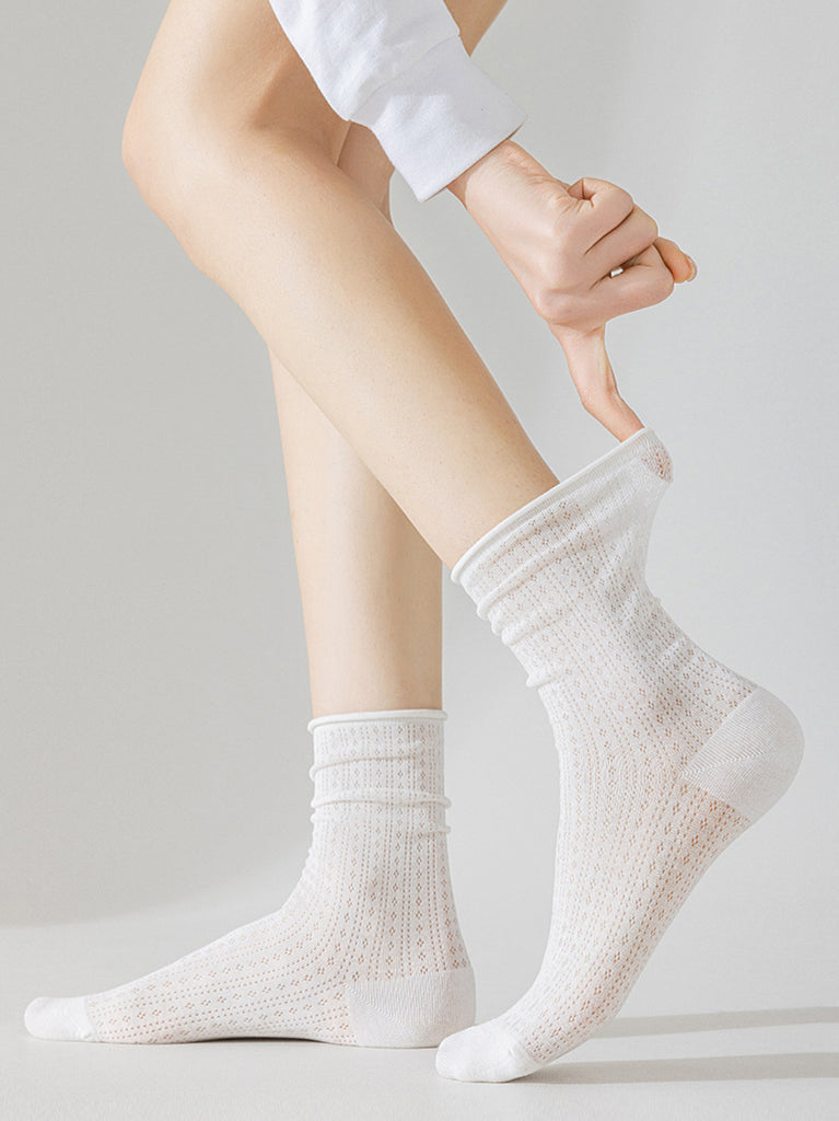 3 Pairs Summer Artsy Flower Jacquard Mid-calf Thin Socks