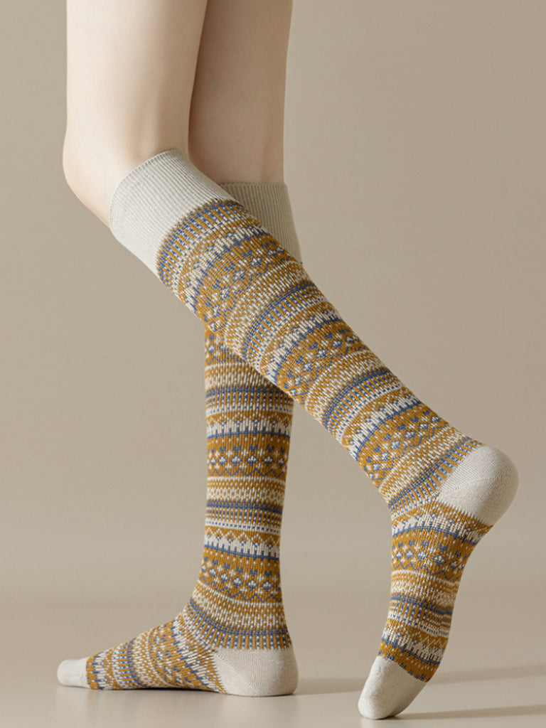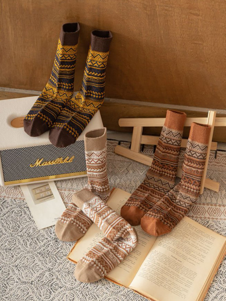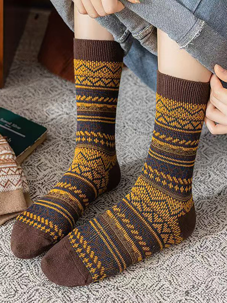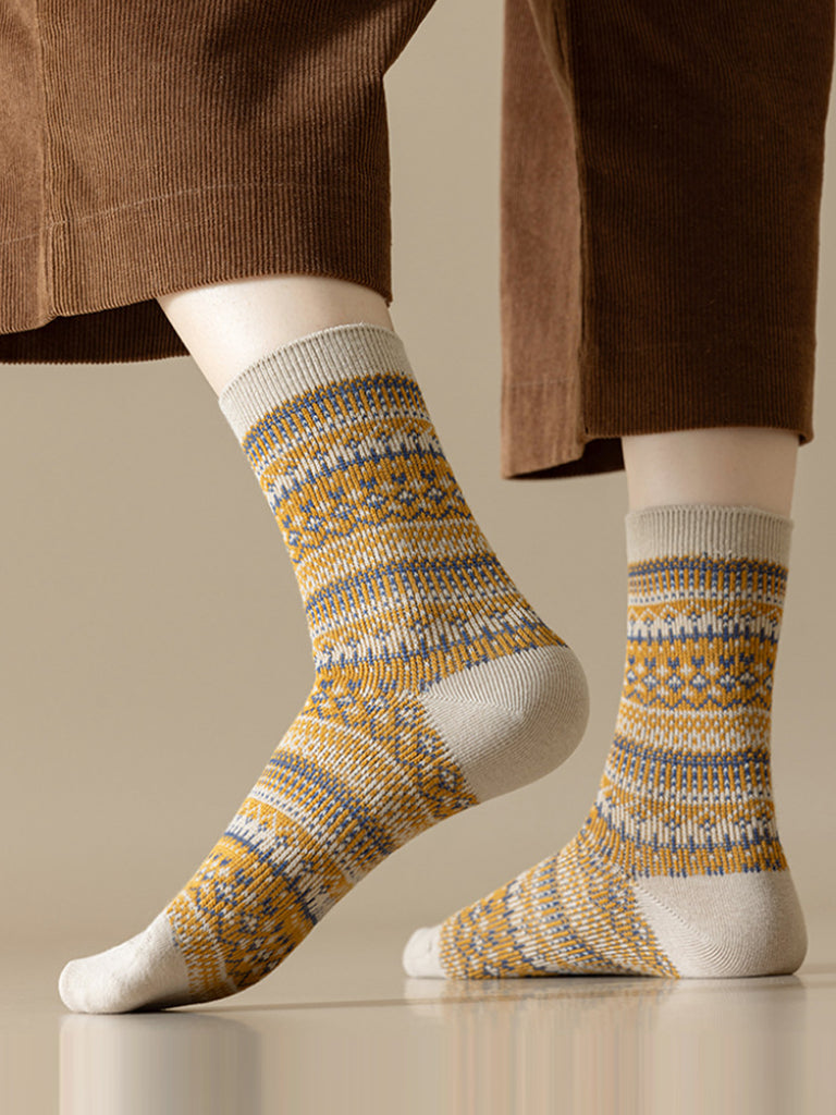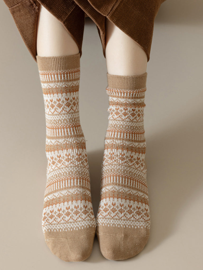 5 Pairs Women Winter Vintage Stripe Cotton Socks