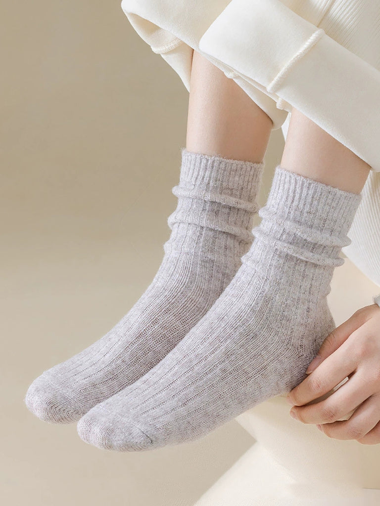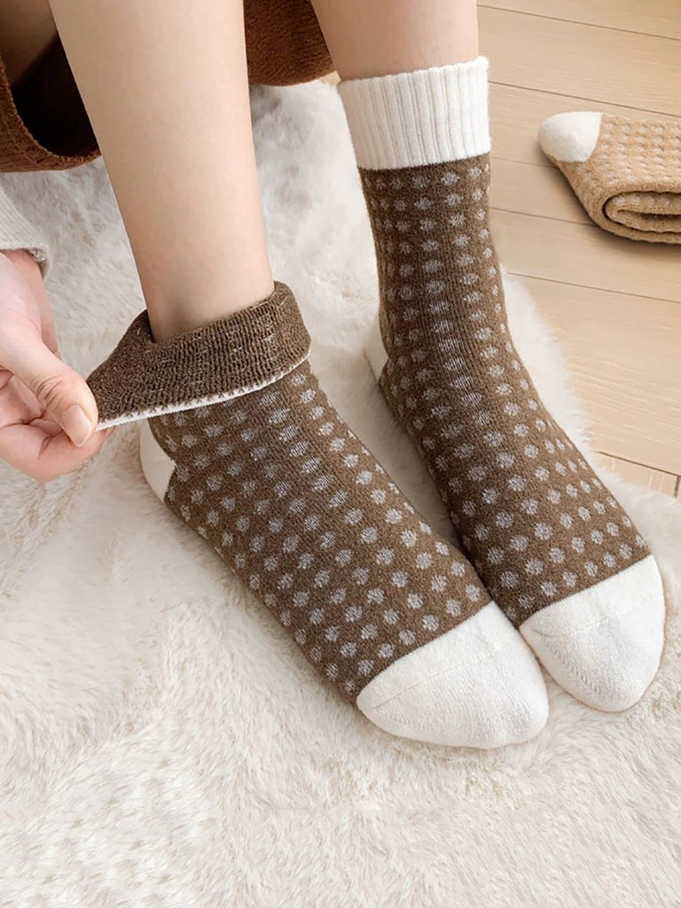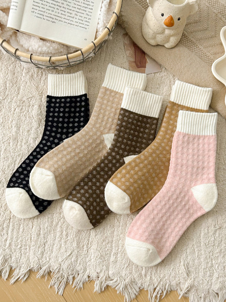 5 Pairs Women Winter Colorblock Mid-heel Socks