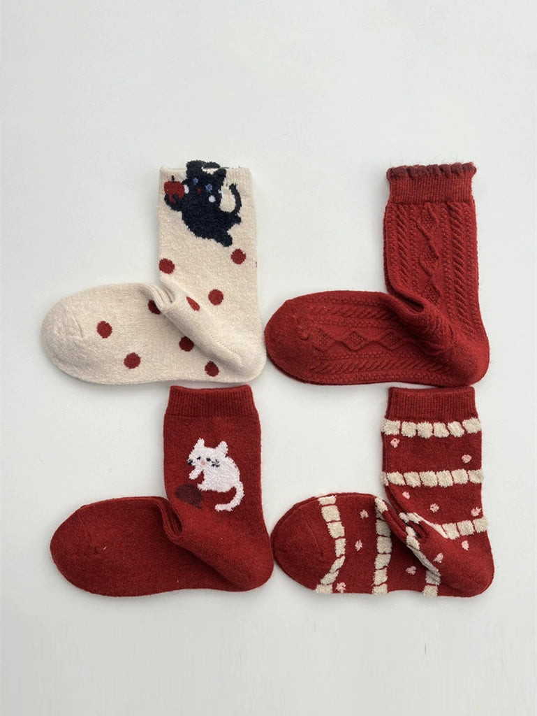 4 Pairs Winter Cute Cat Stripe Warm Socks