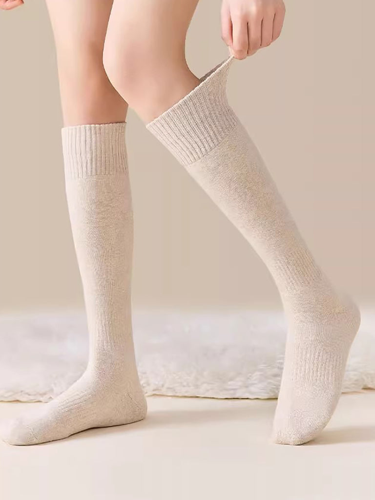 2 Pairs Women Winter Fleece-lined Thick Calf-Length Socks