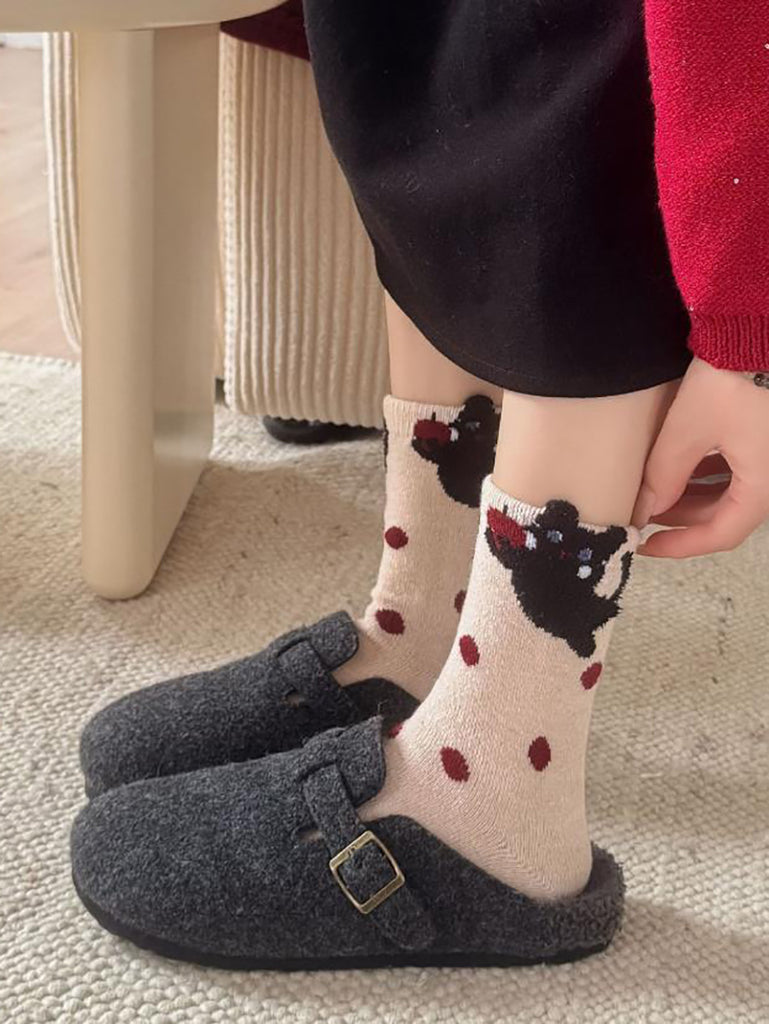 5 Pairs Women Artsy Cherry Jacquard Thick Socks