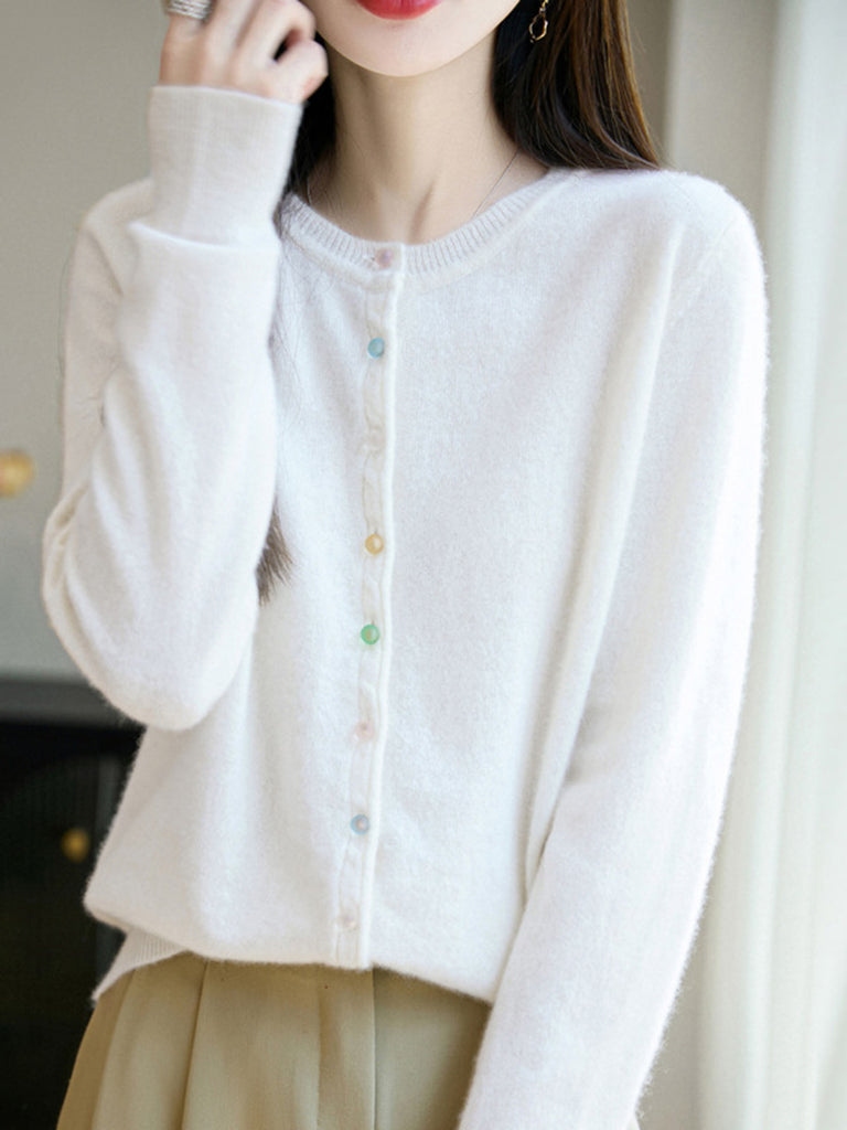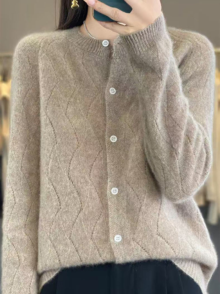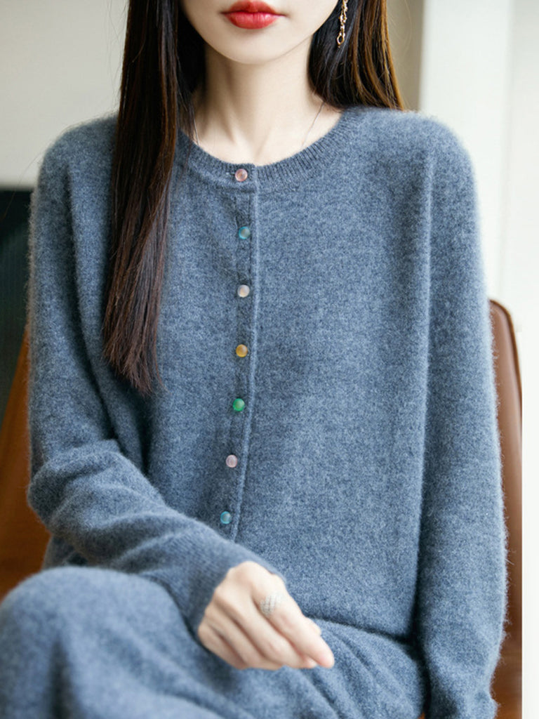 Women Autumn Wool O-Neck Cardigan Knit Sweater