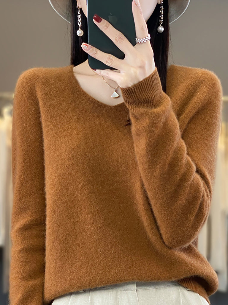 Women Autumn Casual Pure Color O-Neck Wool Sweater