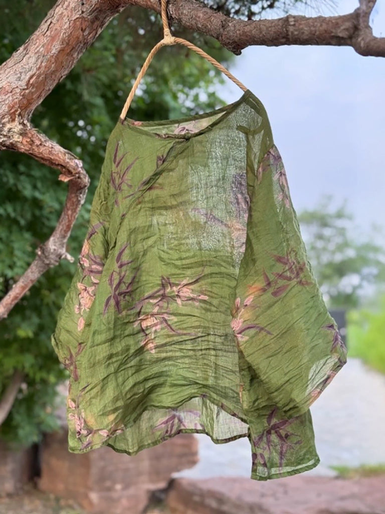 Women Summer Retro Cotton Vase O-Neck Shirt