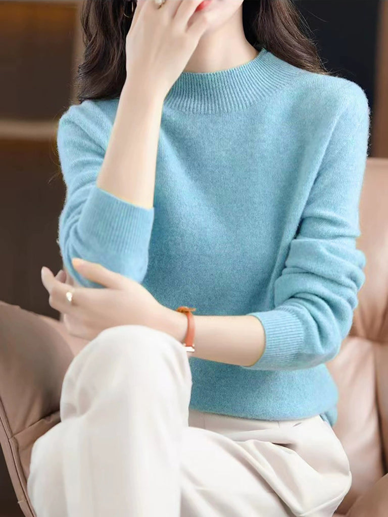 Women Autumn Casual Half-Turtleneck Wool Sweater Blouse