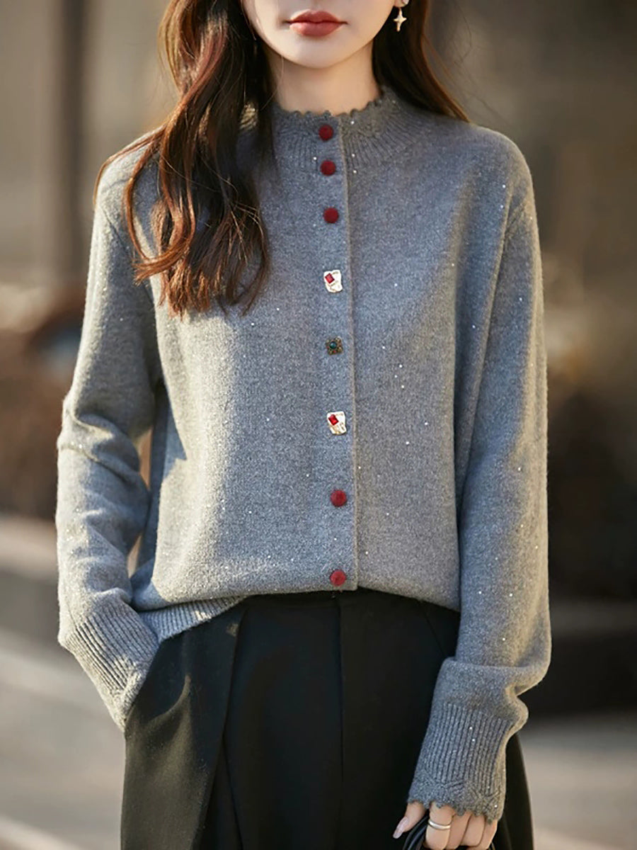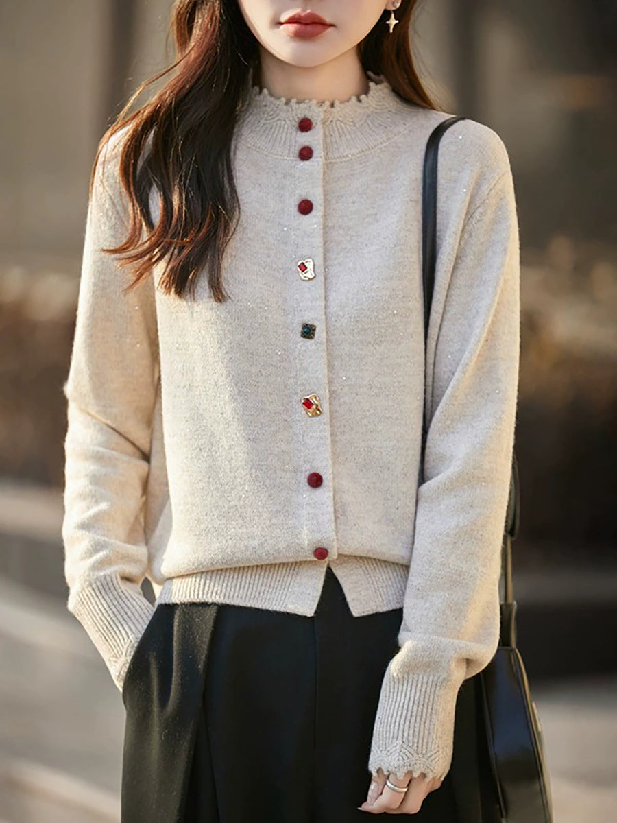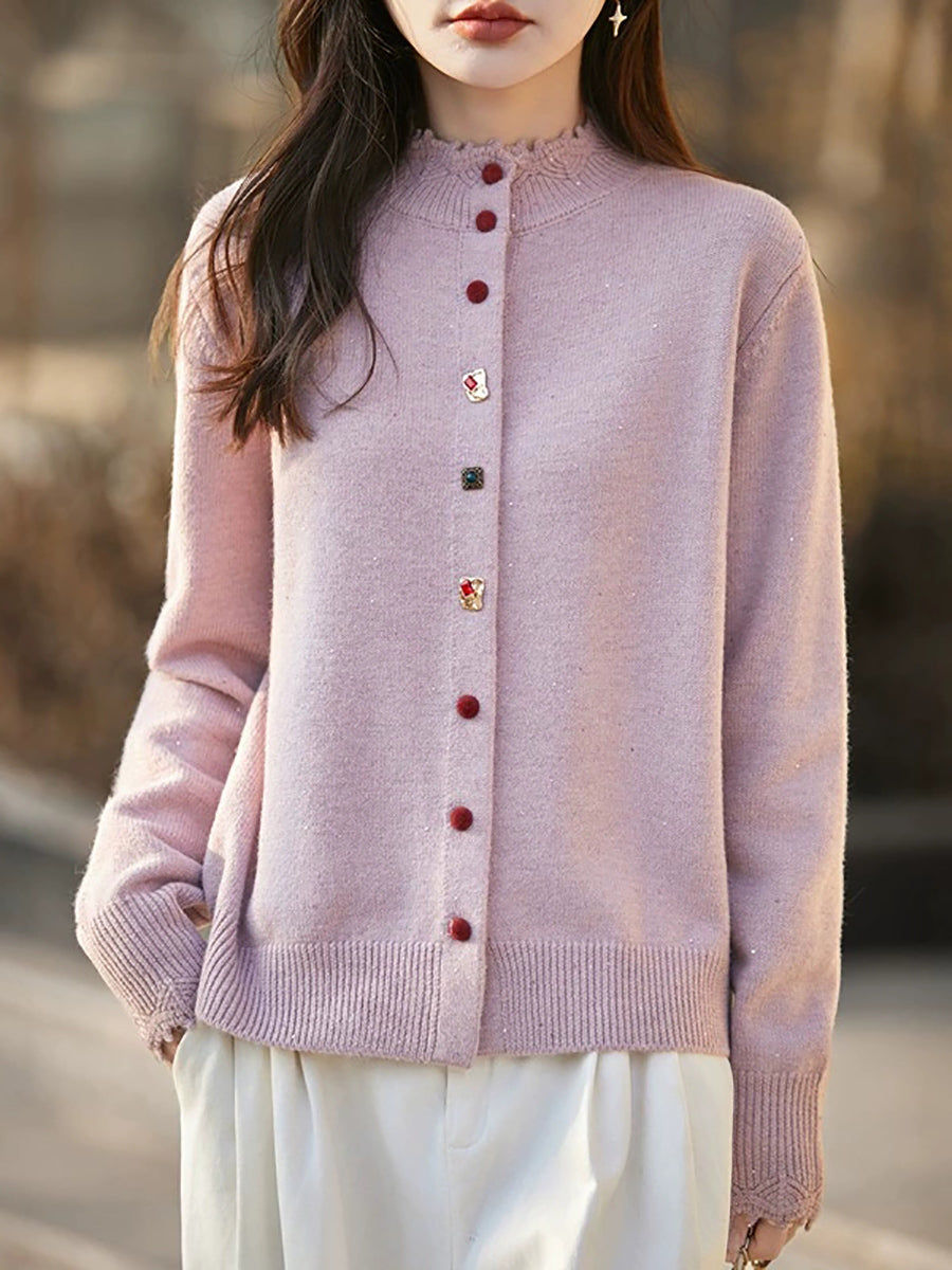Women Artsy Spring Pure Color Stand Collar Sweater