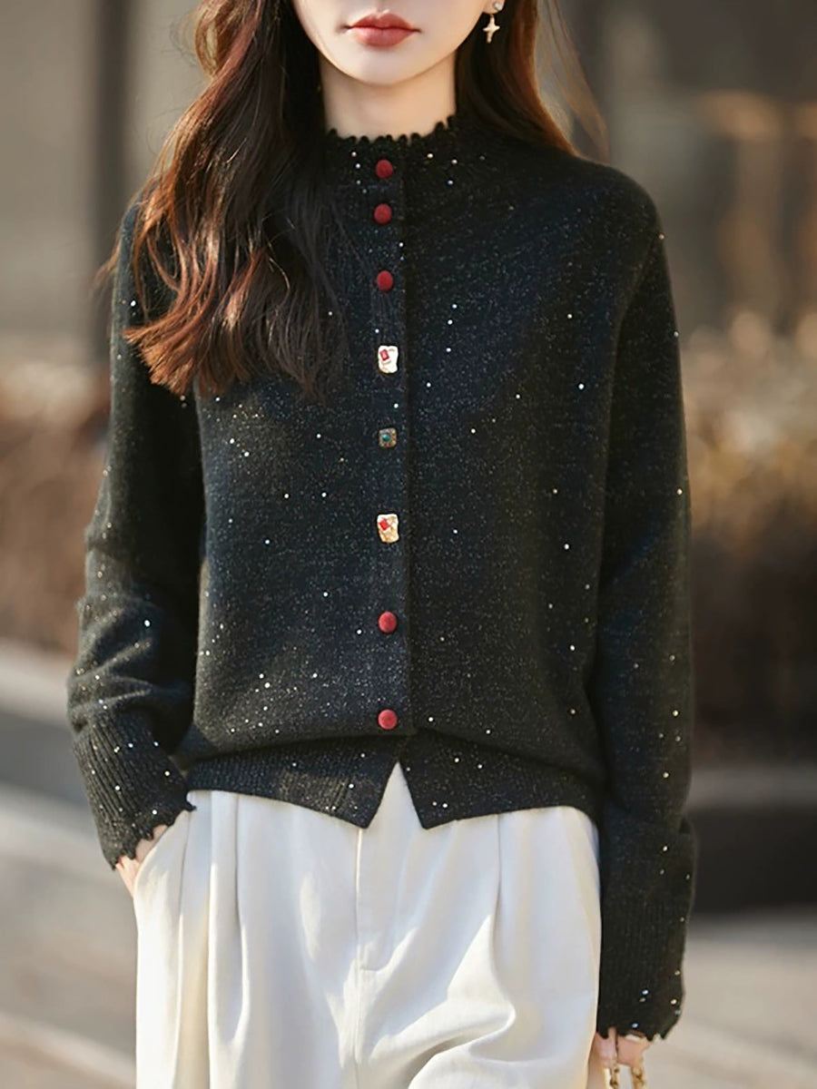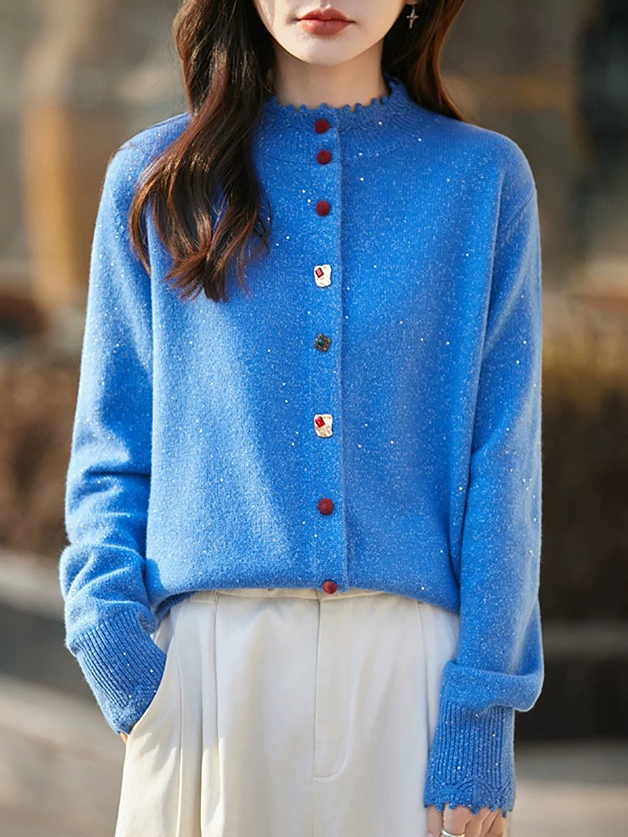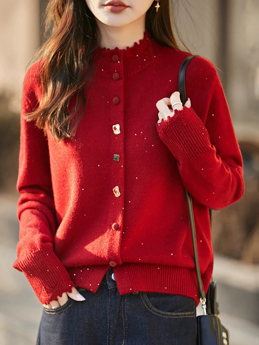Women Artsy Spring Pure Color Stand Collar Sweater