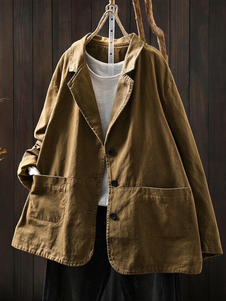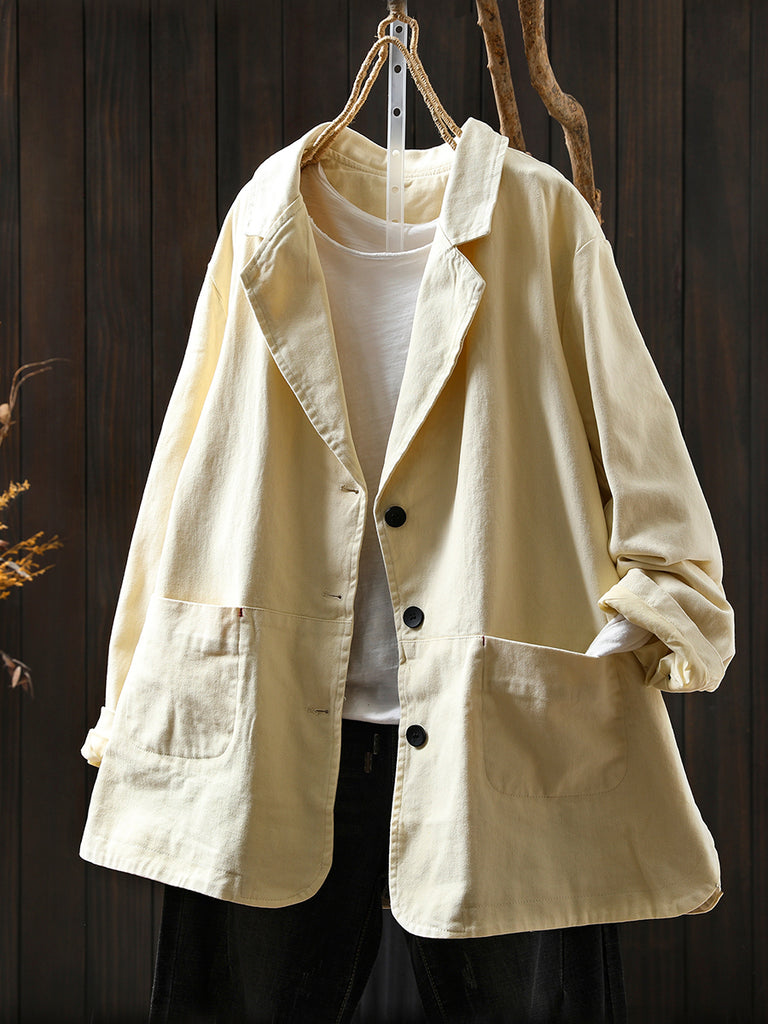 Women Autumn Vintage Button-up Solid Linen Shirt