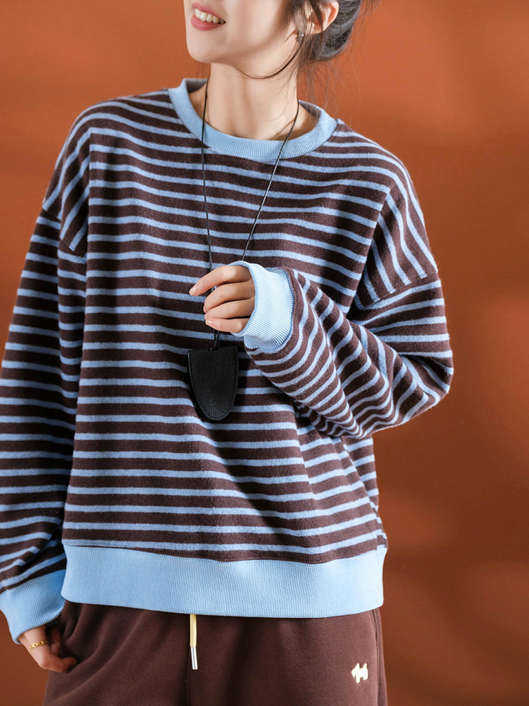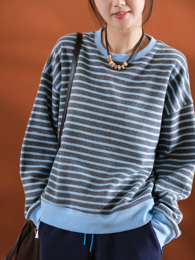 Women Retro Autumn Stripe 100%Cotton Hoodie