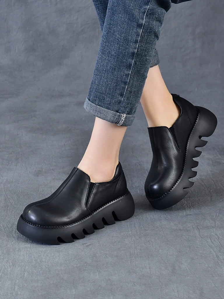 Women Autumn Vintage Genuine Leather Platform Shoes