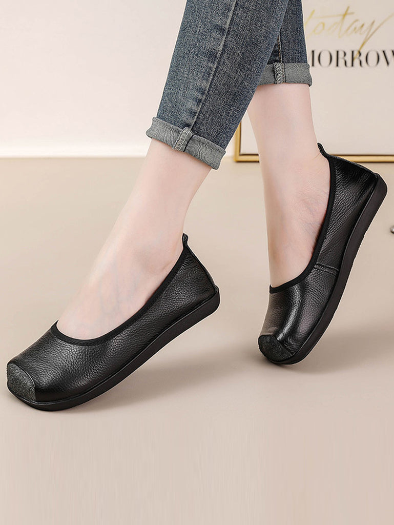 Women Autumn Artsy Solid Soft Leather Flat Shoes