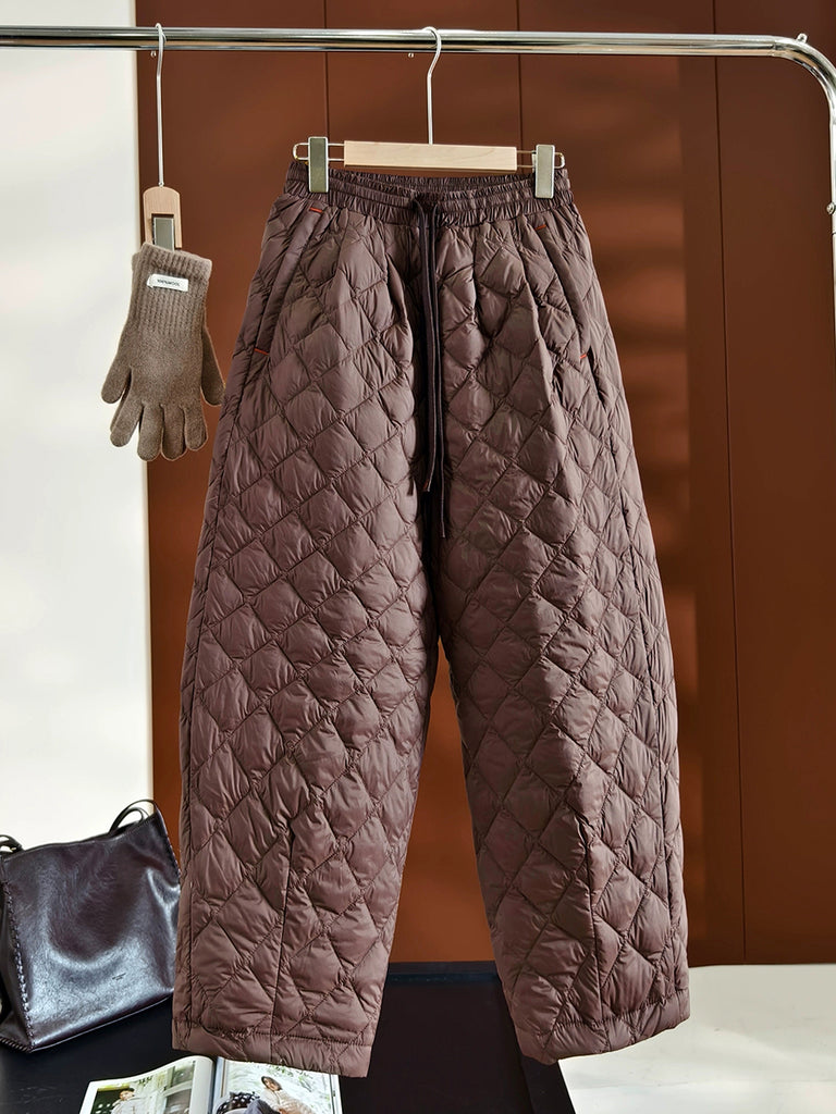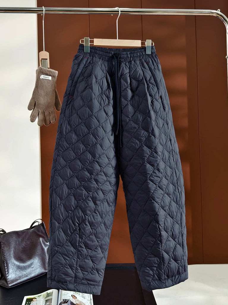 Women Winter Casual Pure Color Down Wide-leg Pants