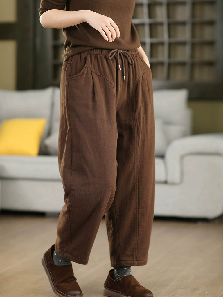 Women Winter Pure Color 100%Hemp Padded Harem Pants