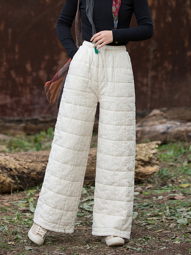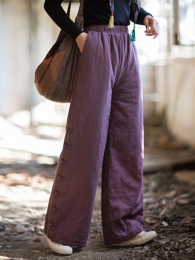 Women Winter Ethnic Pure Color Padded Straight Pants