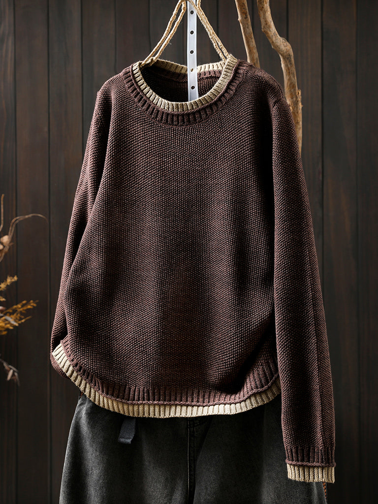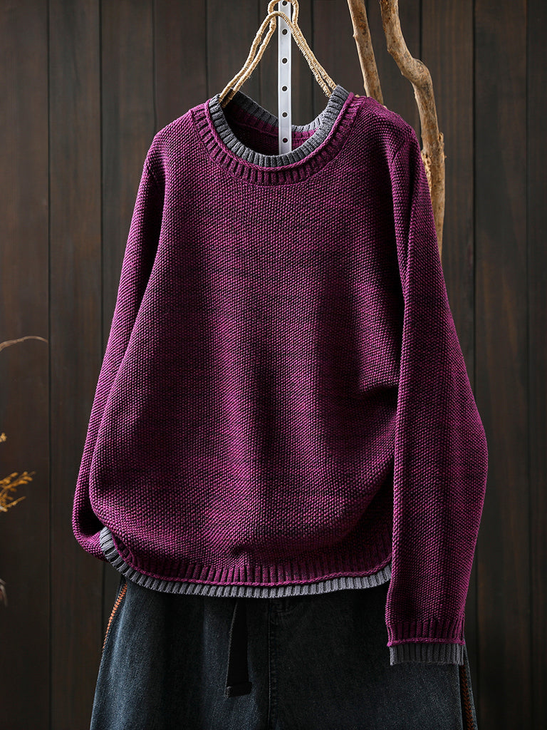 Women Autumn Artsy Colorblock O-Neck Knitted Sweater