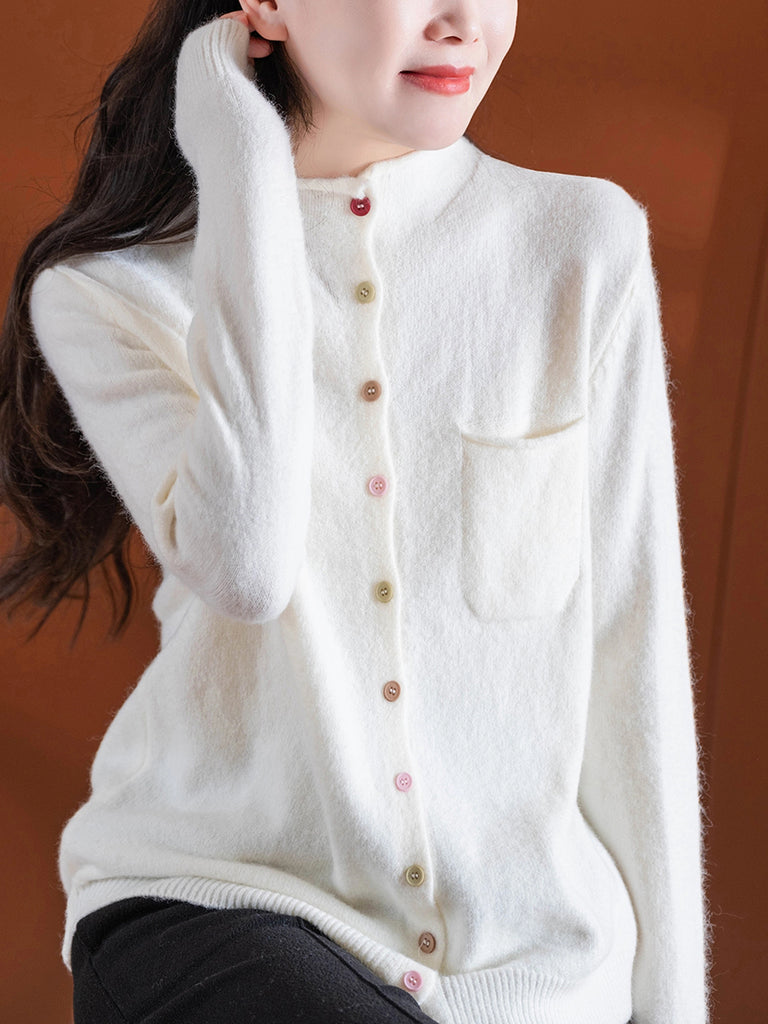 Women Autumn Artsy Colorblock Knitted V-Neck Cardigan Coat