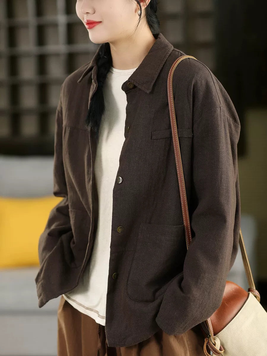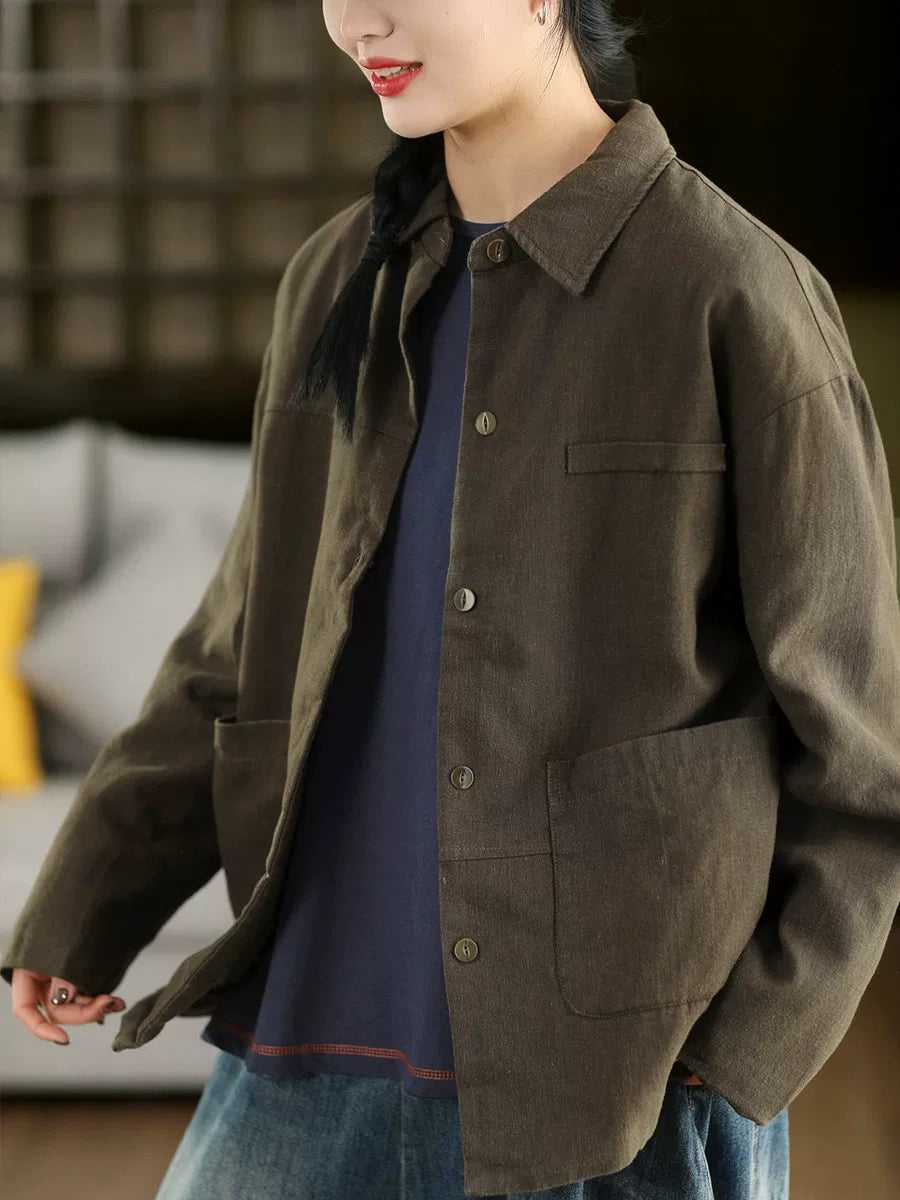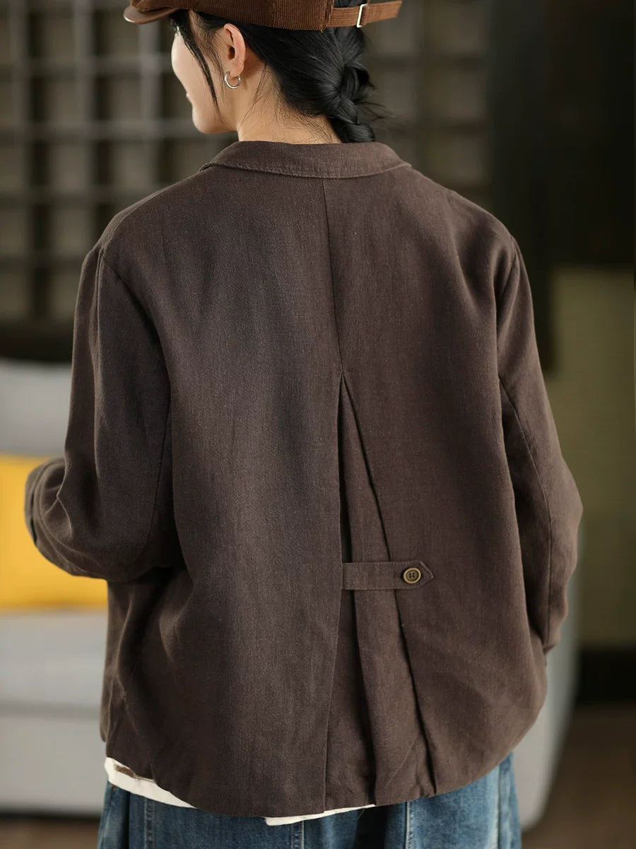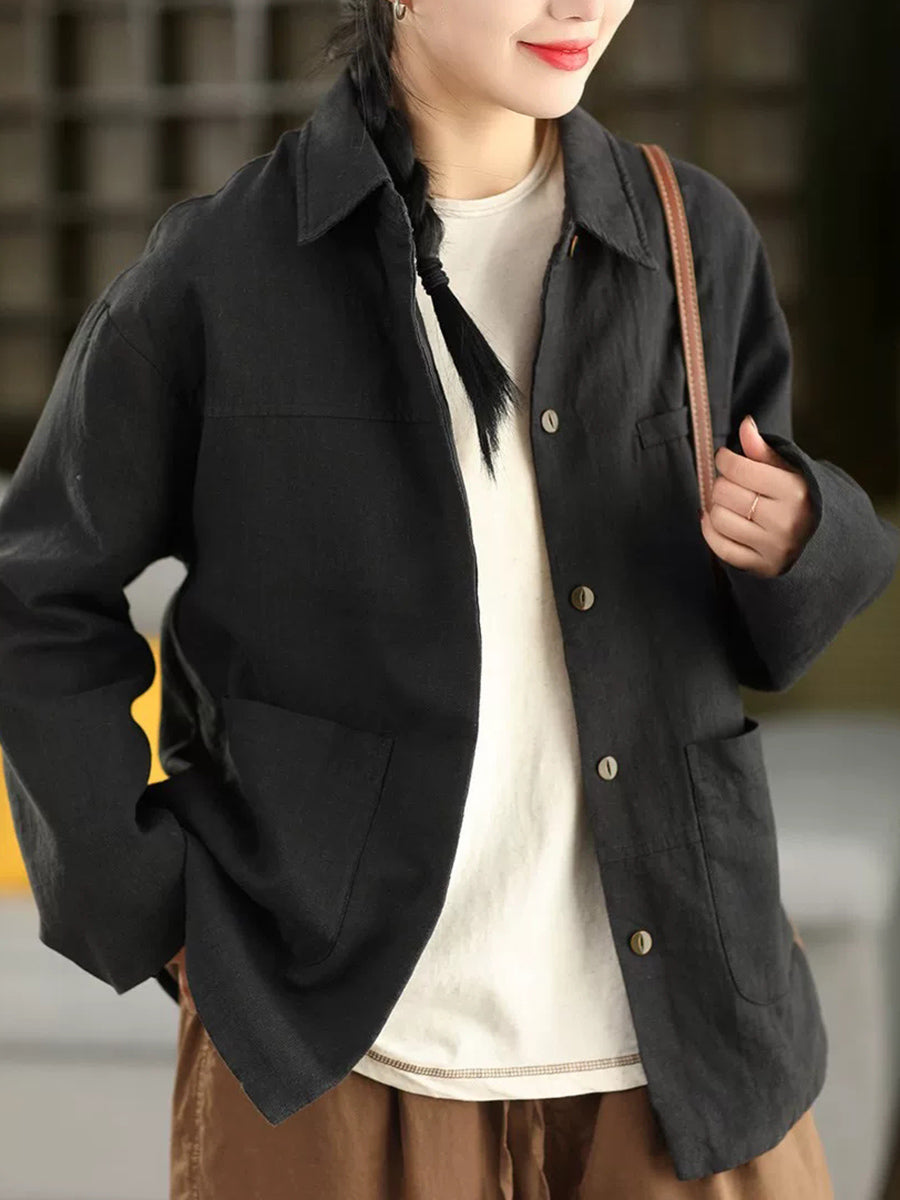 Women Spring Pure Color Turn-down Collar 100%Linen Coat
