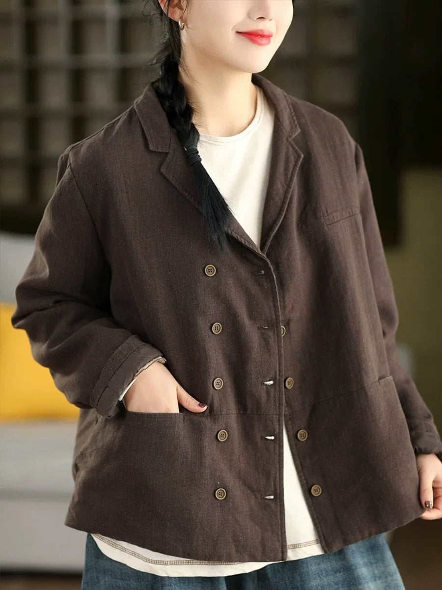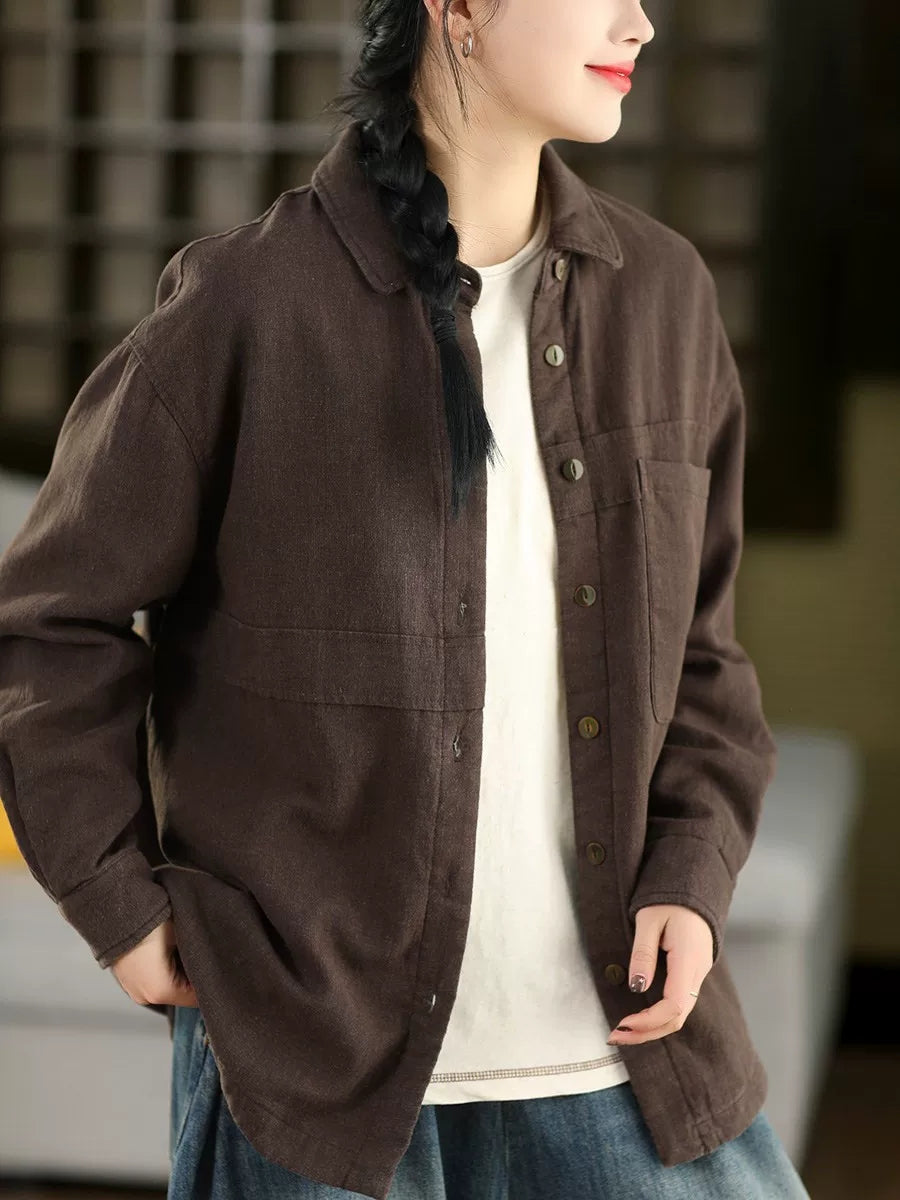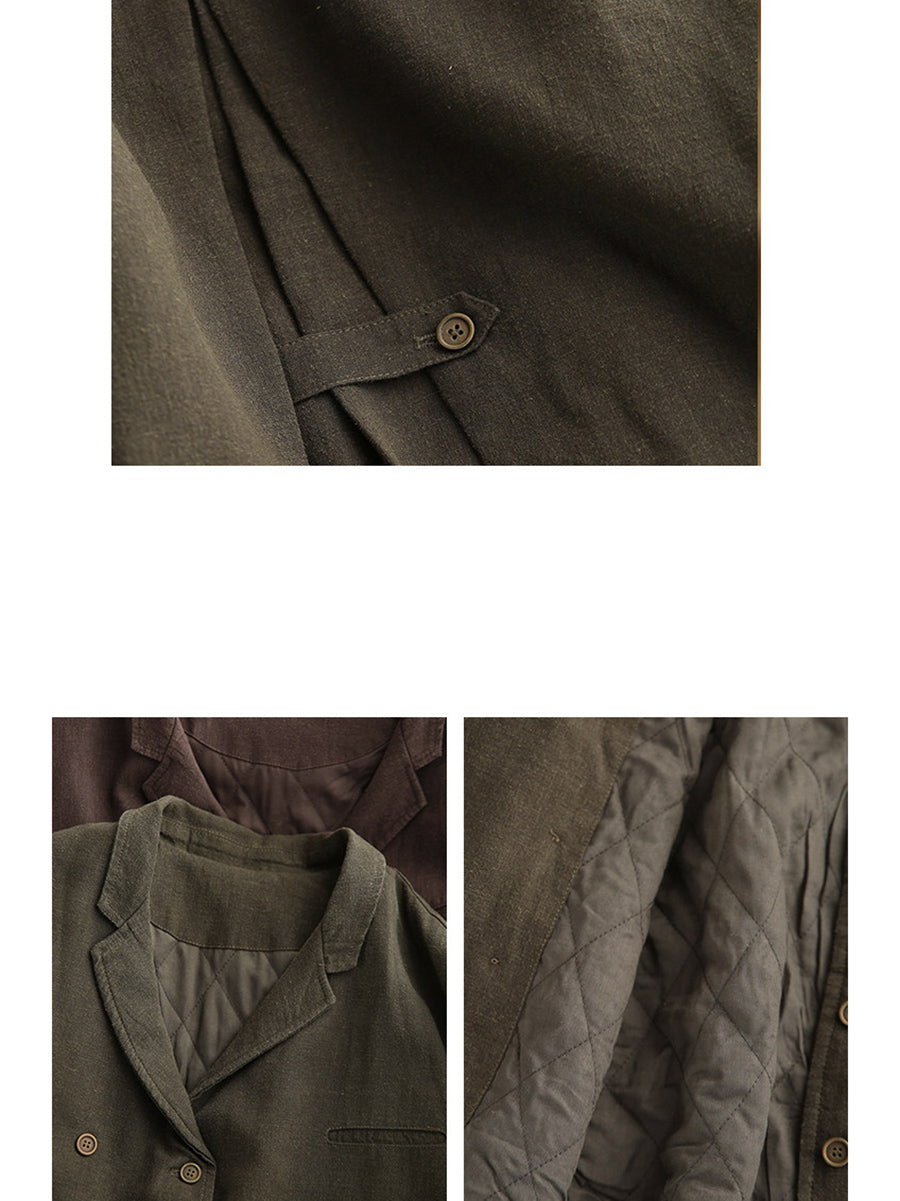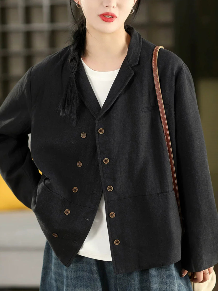 Women Spring Pure Color Turn-down Collar 100%Linen Coat