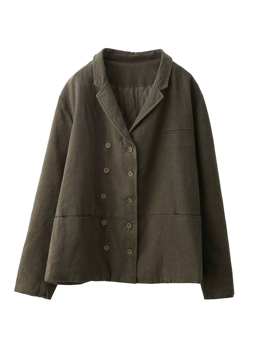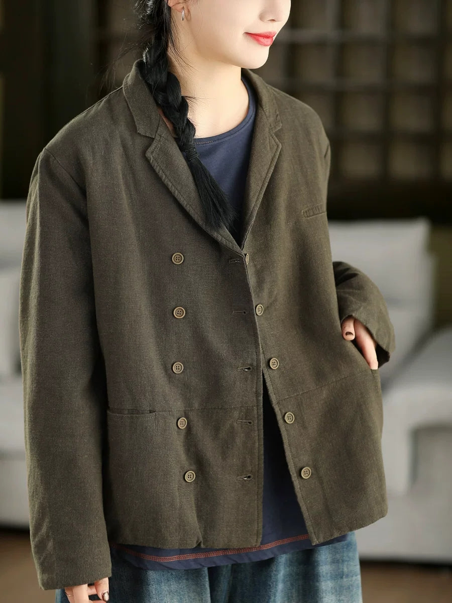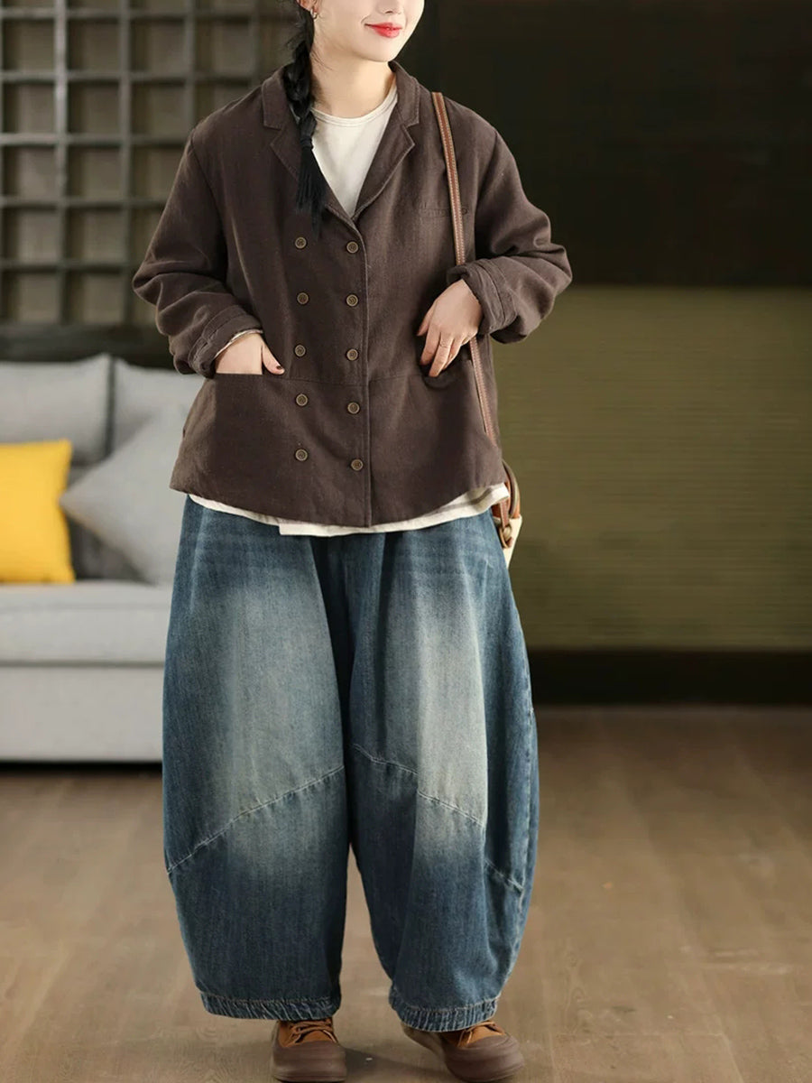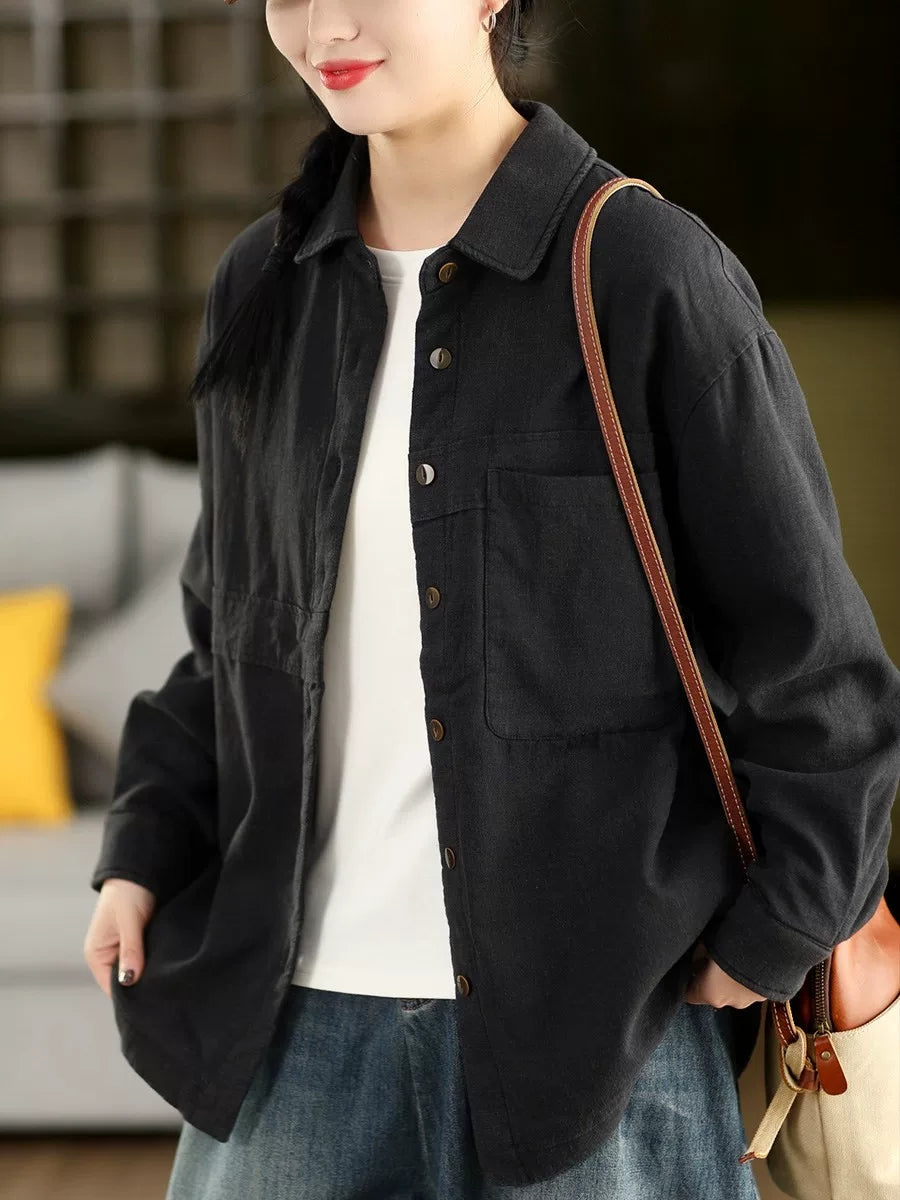 Women Spring Pure Color Turn-down Collar 100%Linen Coat