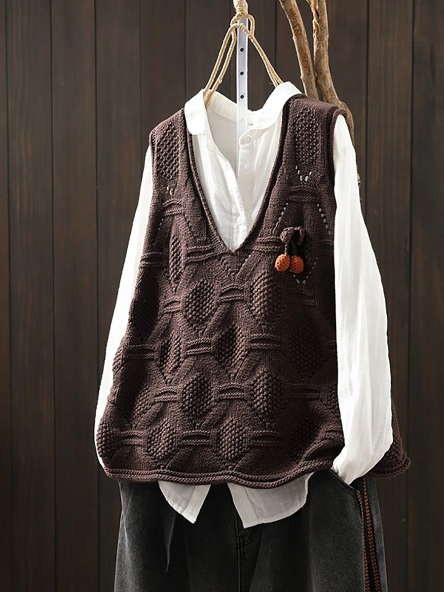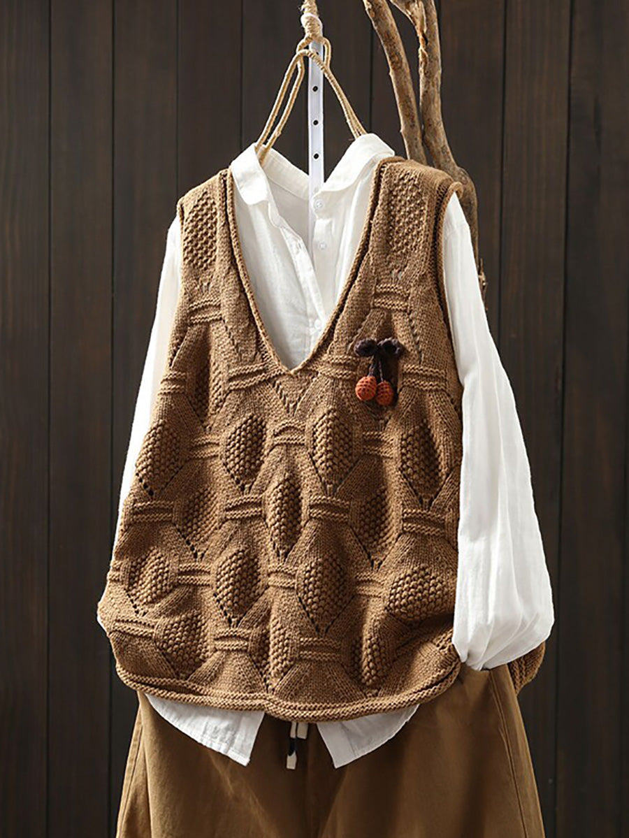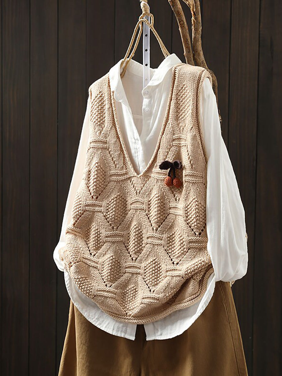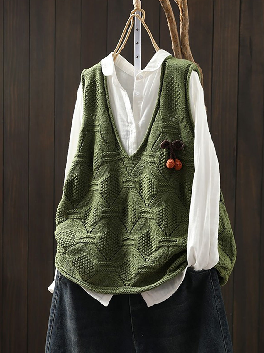 Women Spring Artsy Knitted V-Neck Vest