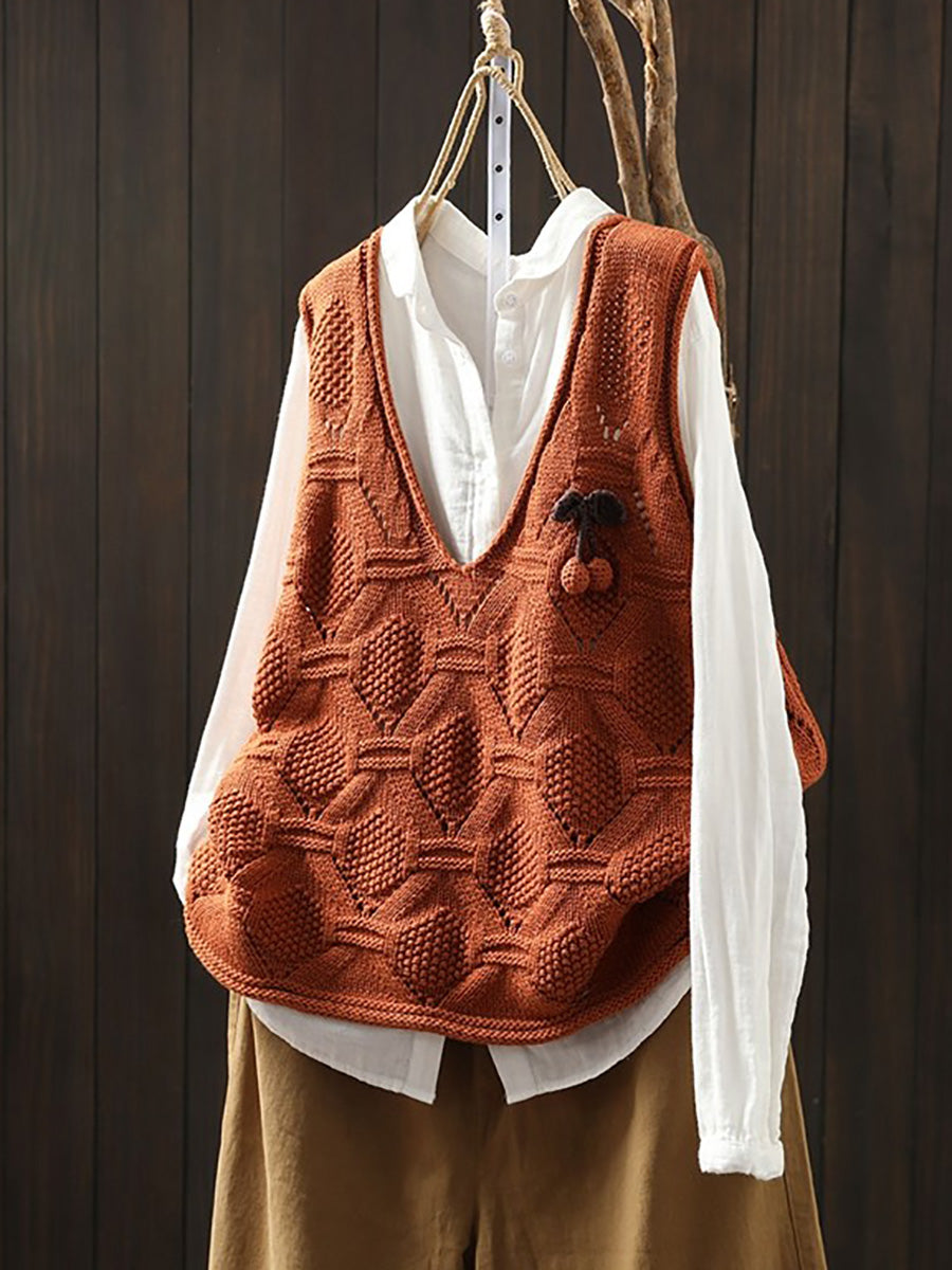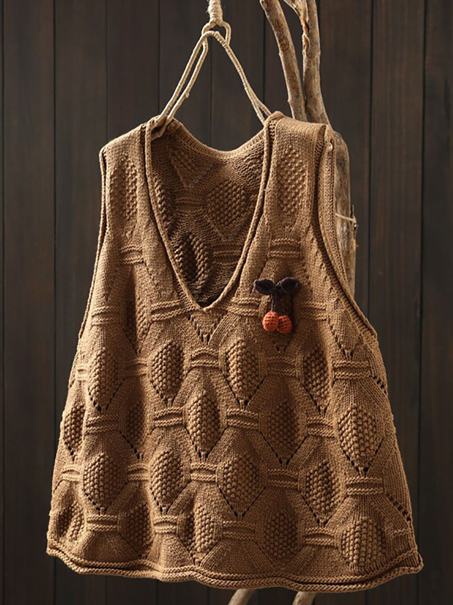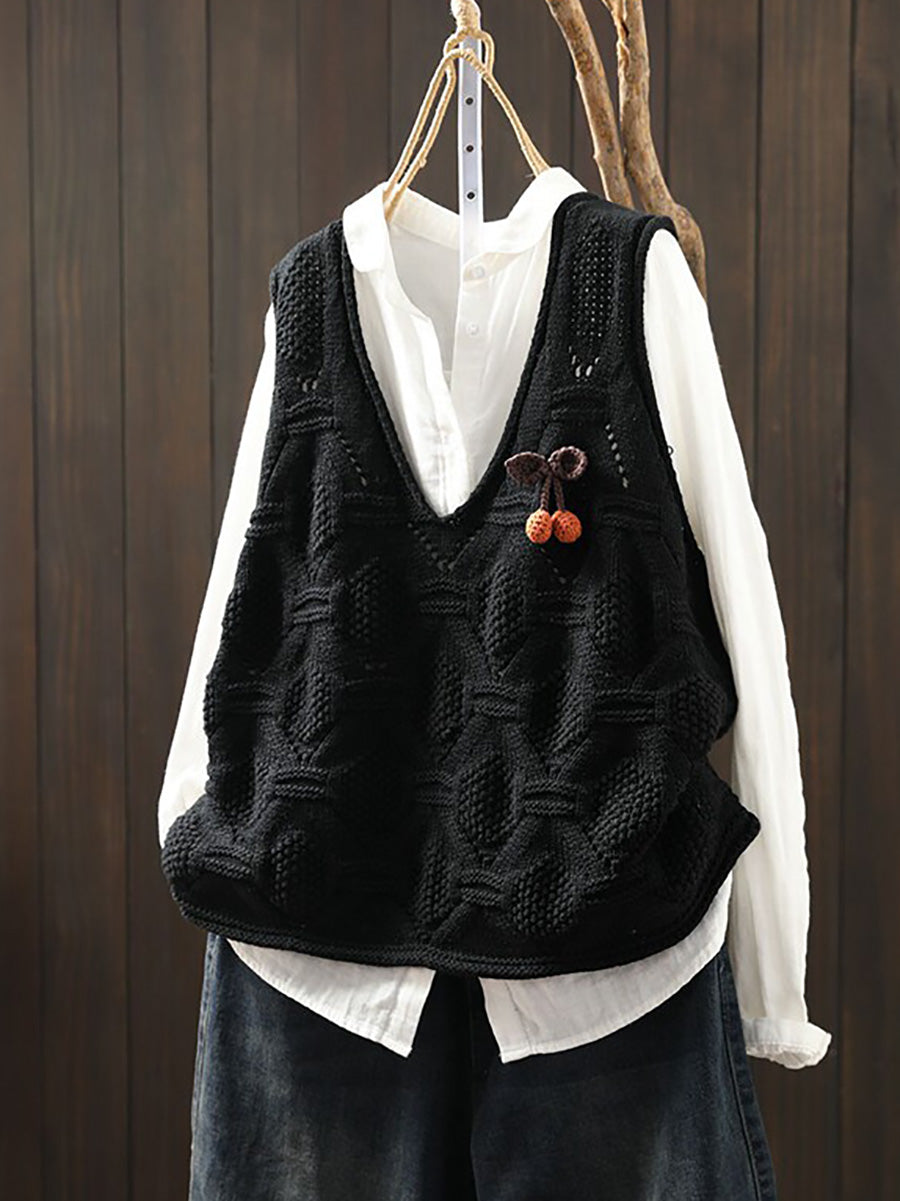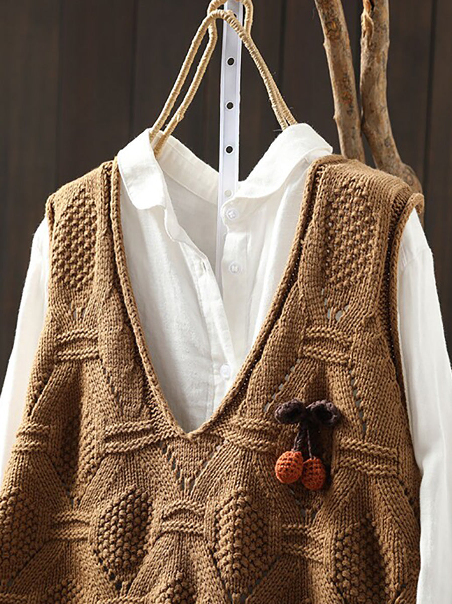 Women Spring Artsy Knitted V-Neck Vest