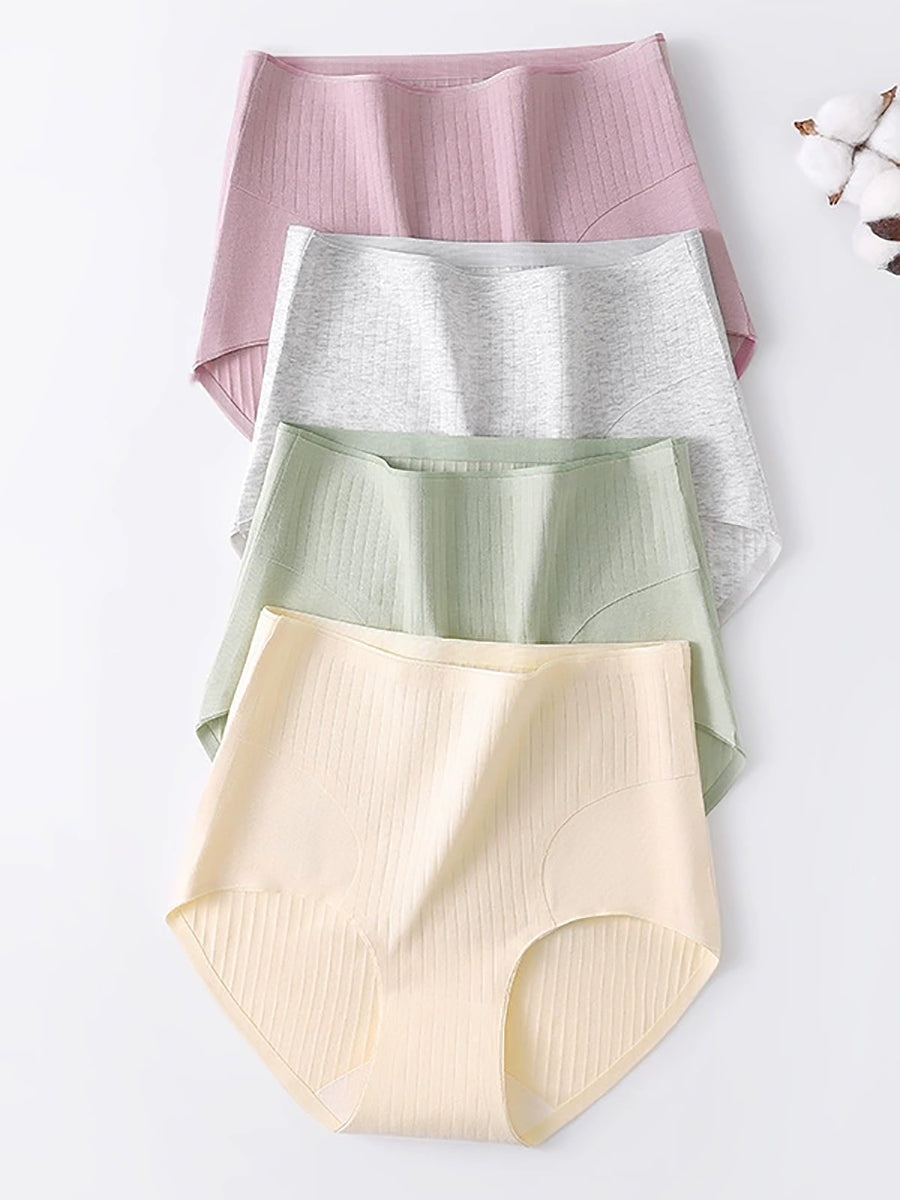 4 Pieces Women Artsy Pure Color High Waist Underwear