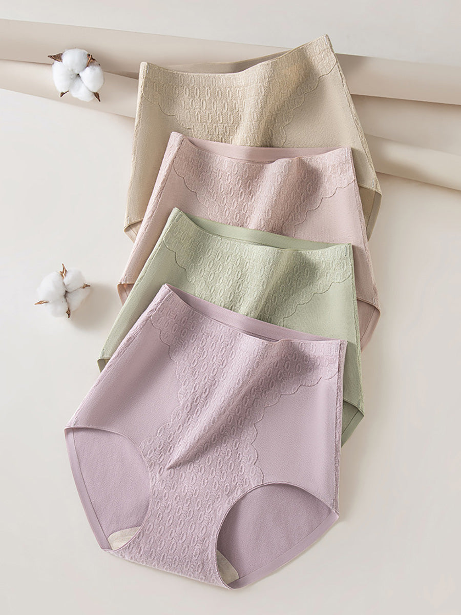 4 Pieces Women Casual Pure Color High Waist Underwear