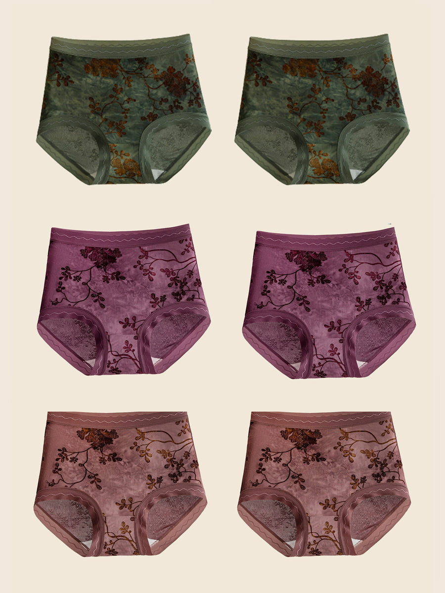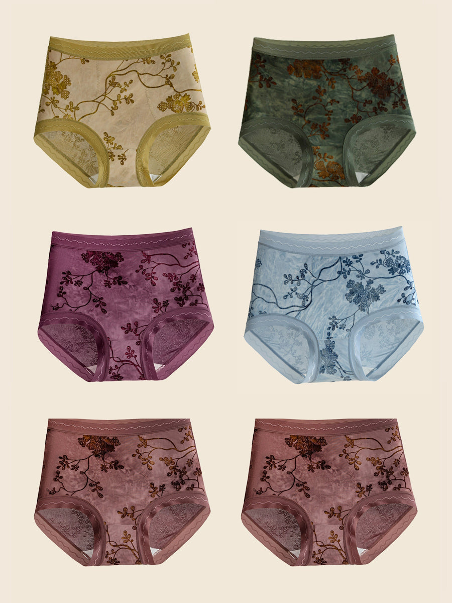 6 Pieces Women Flower Jacquard High Waist Underwear