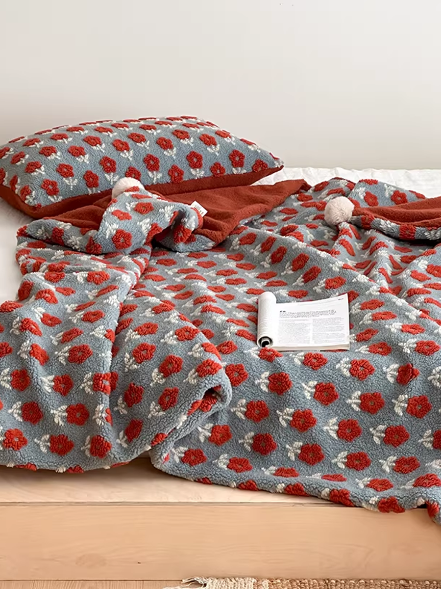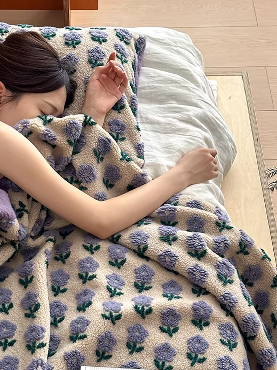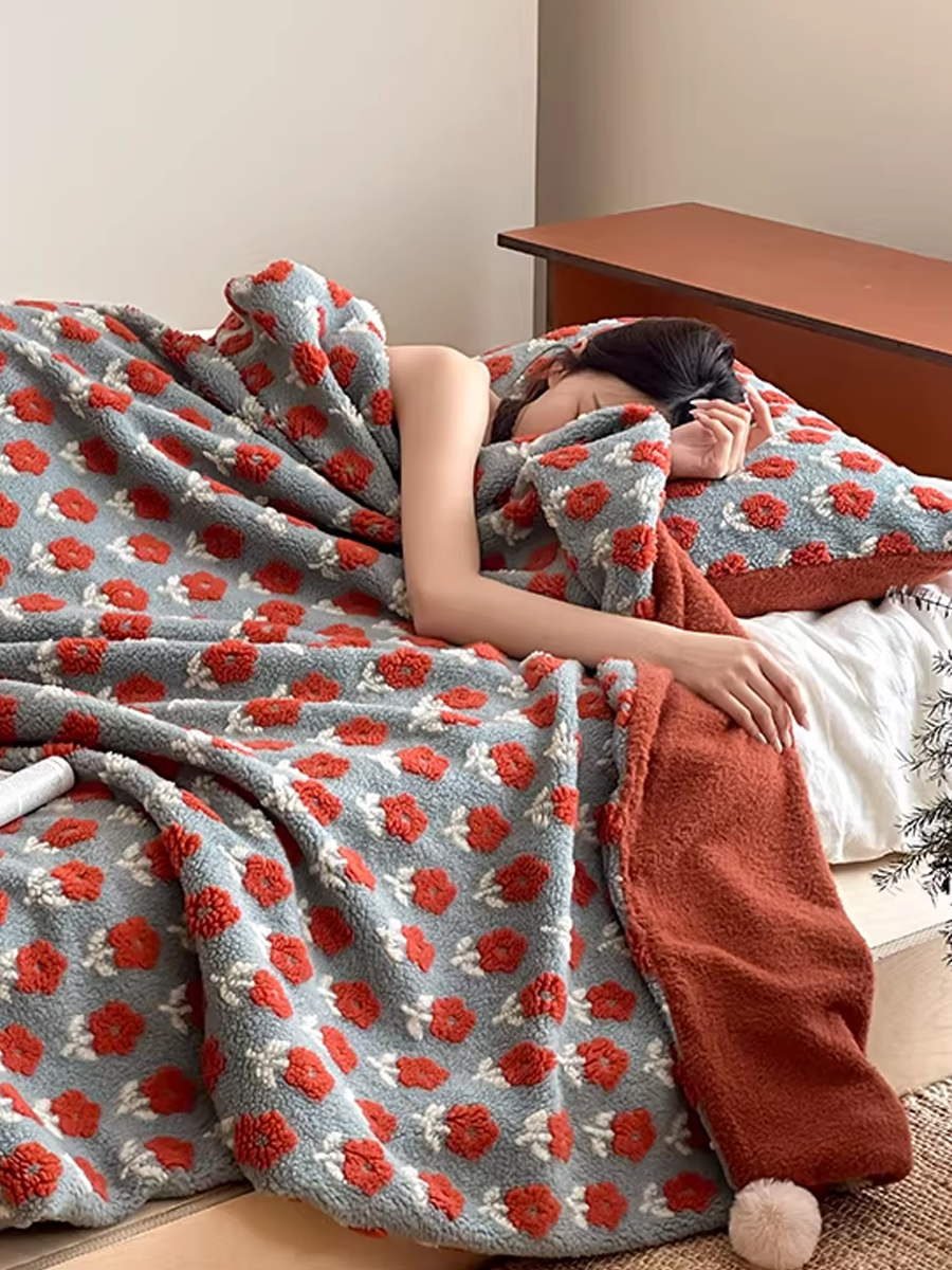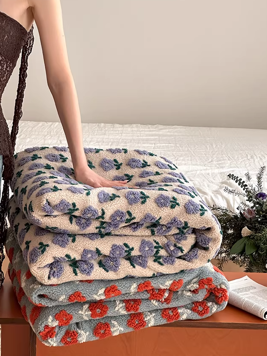 Morning Floral Jacquard Soft Sherpa Fleece Throw Blanket