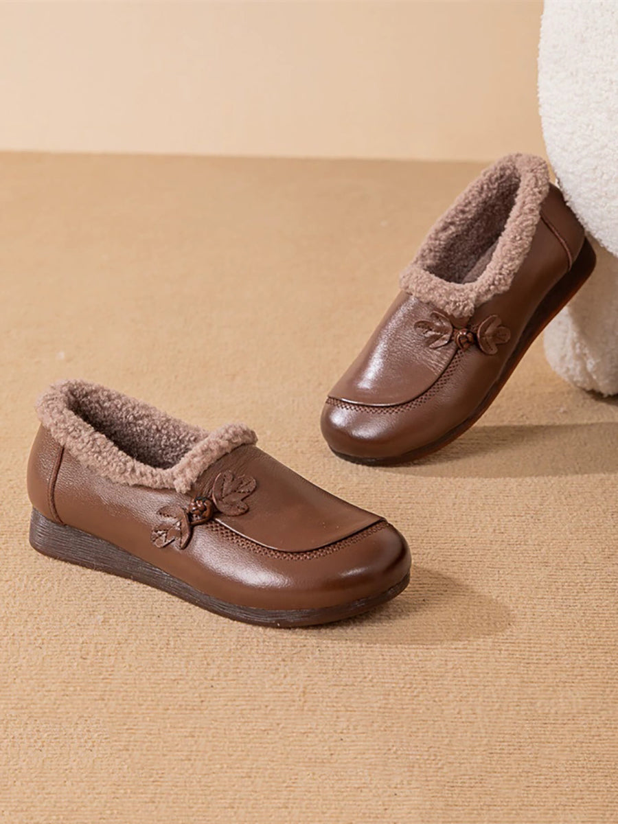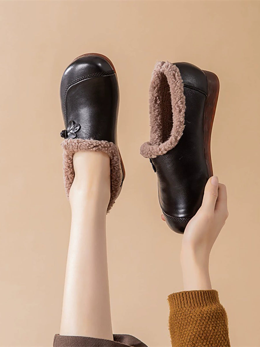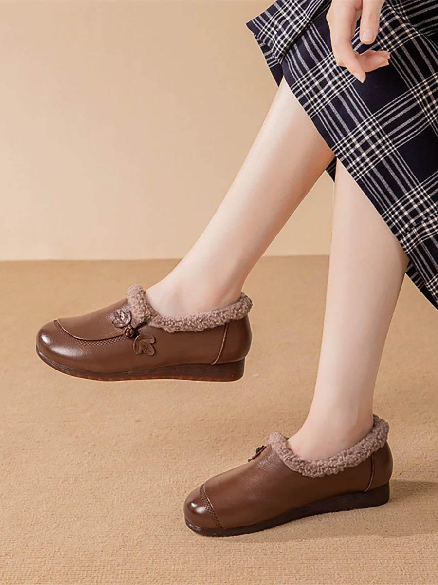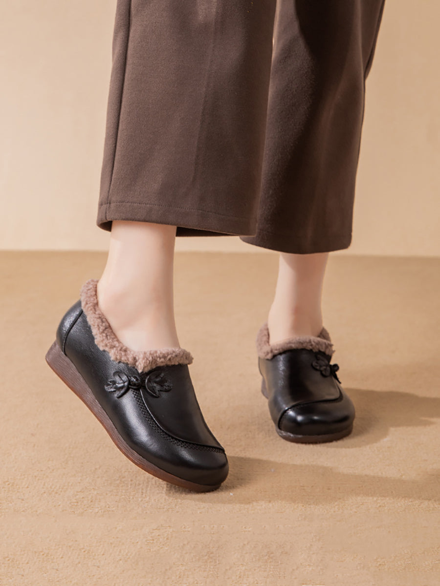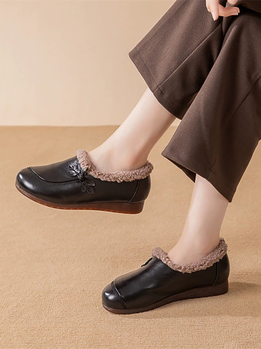 Women Artsy Genuine Leather Fleece-lined Shoes