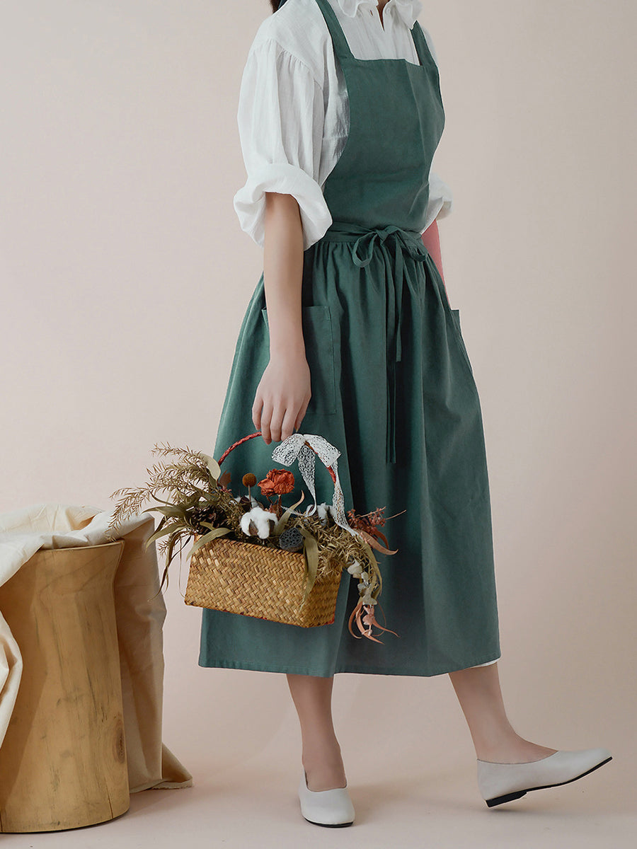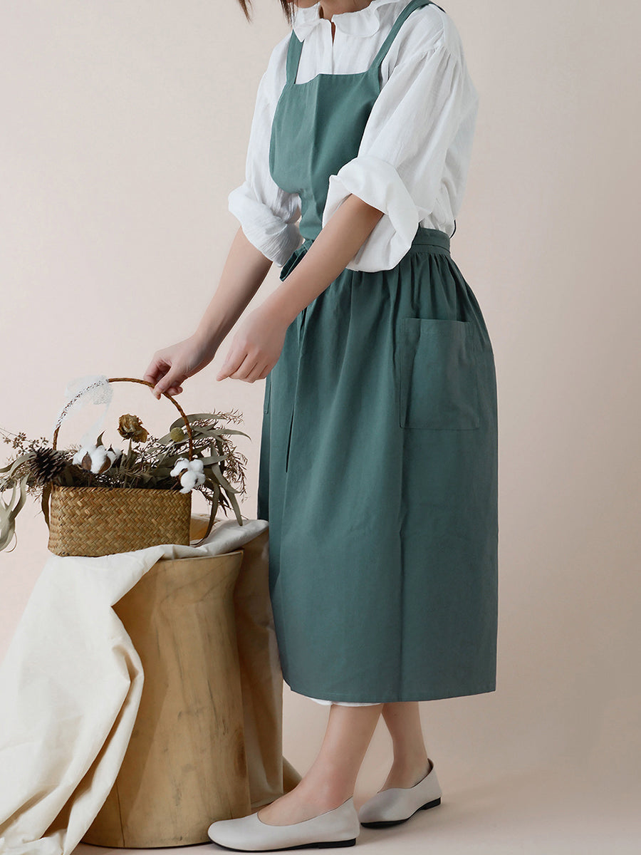 Women Casual Solid Summer Cotton Apron Dress