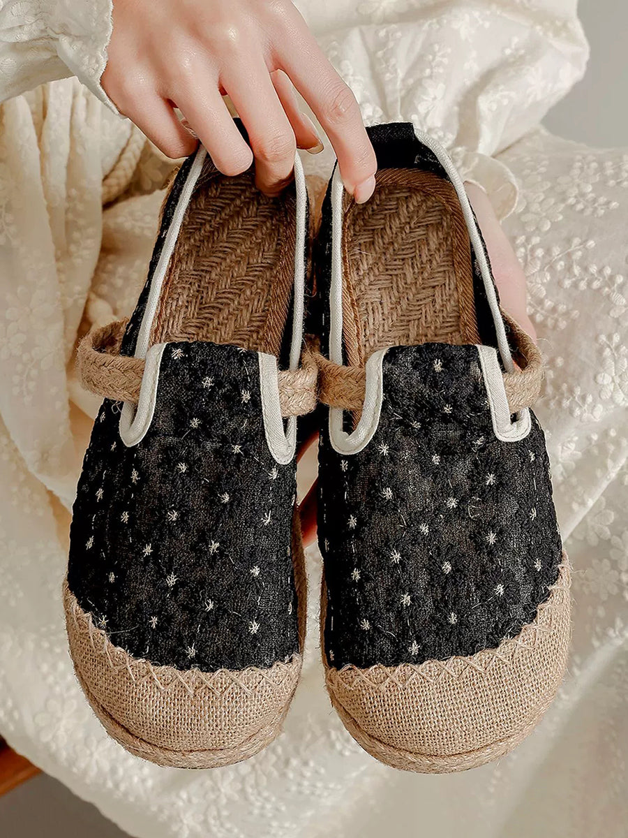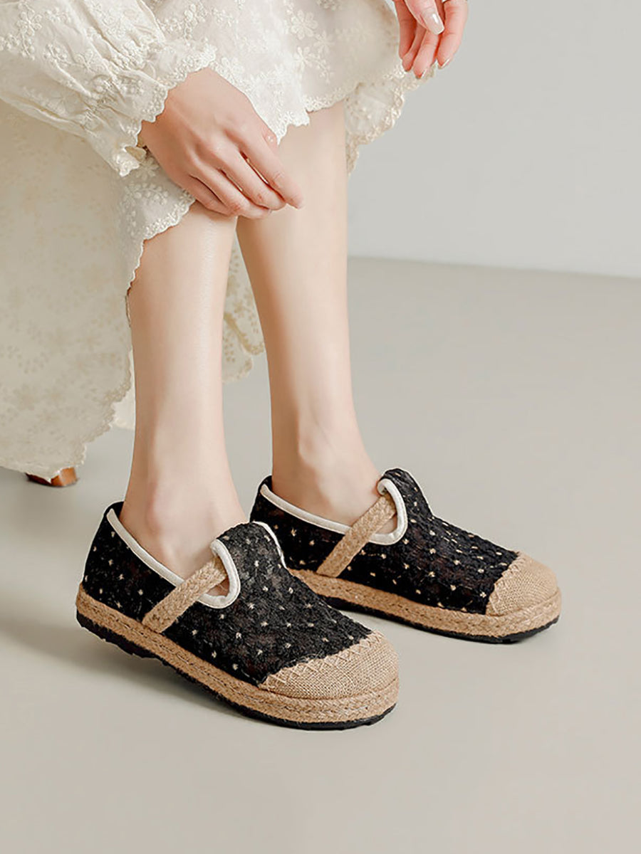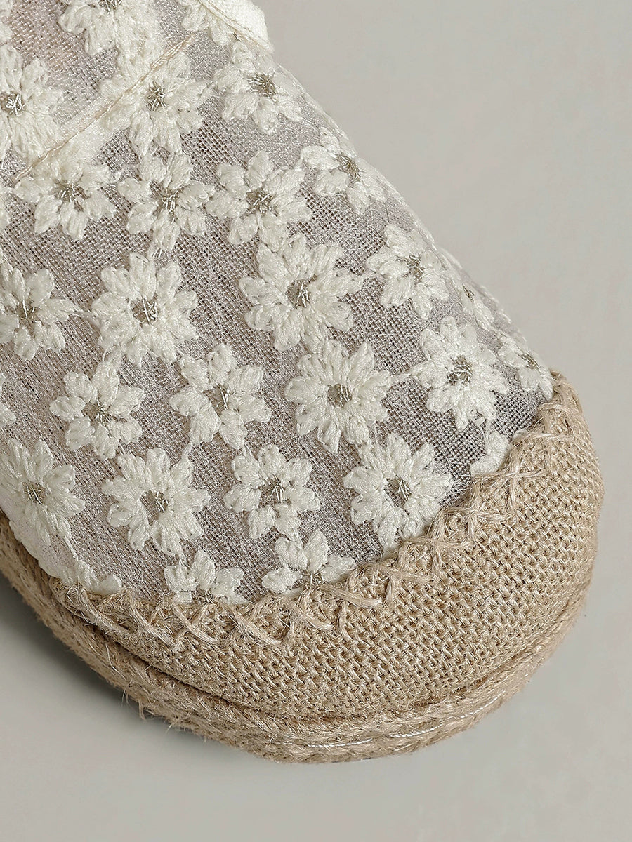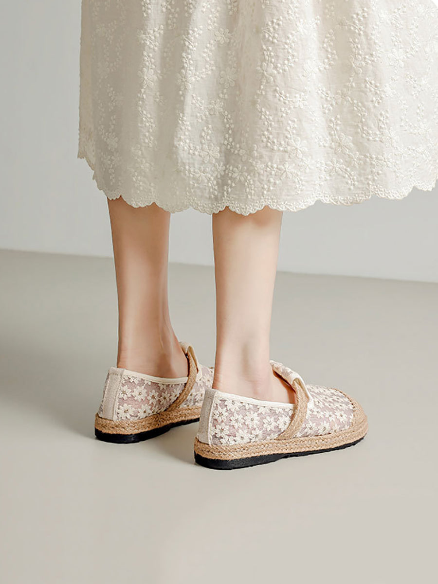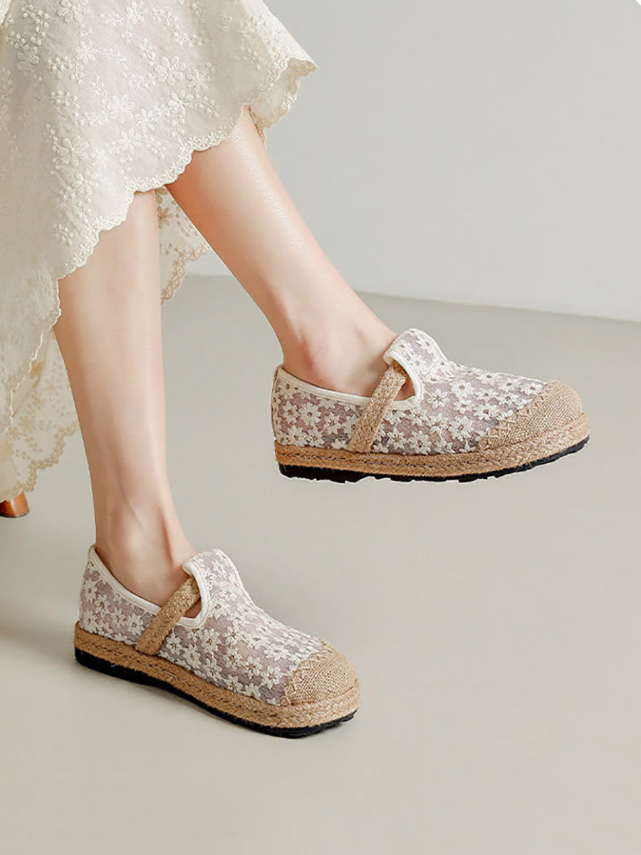 Women Ethnic Flower Embroidery Flat Shoes
