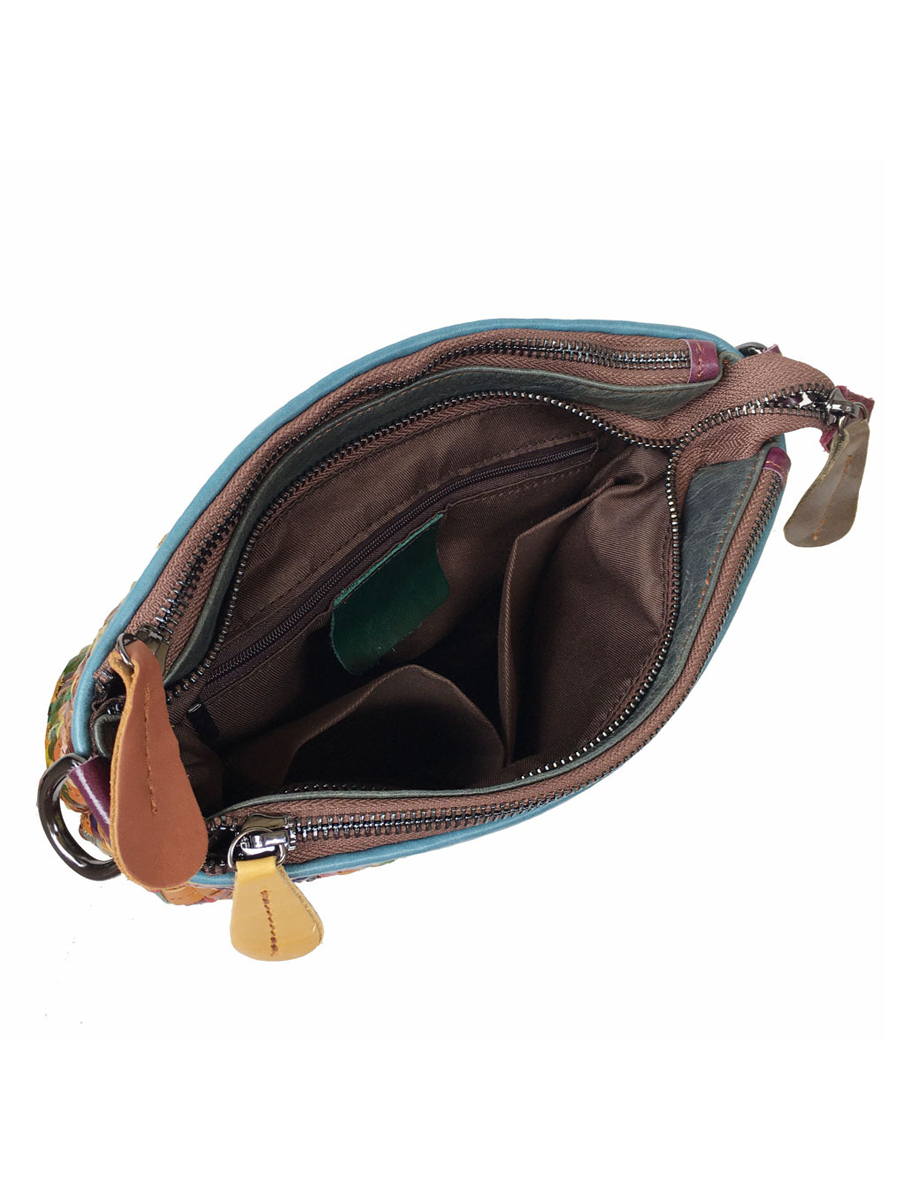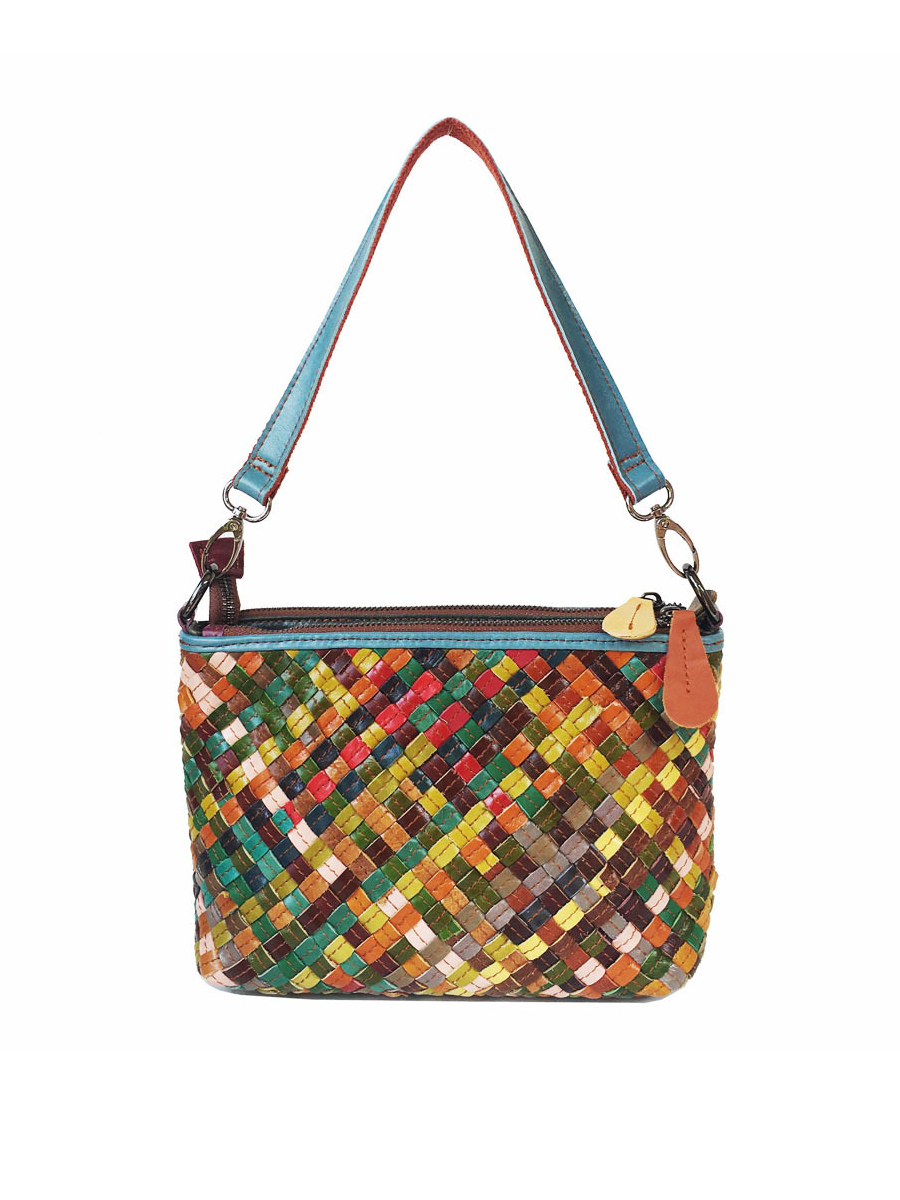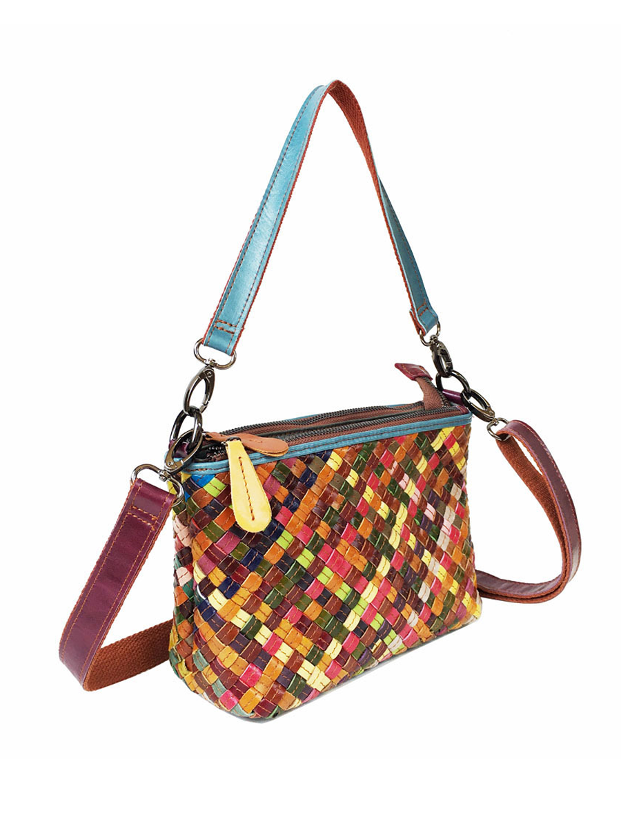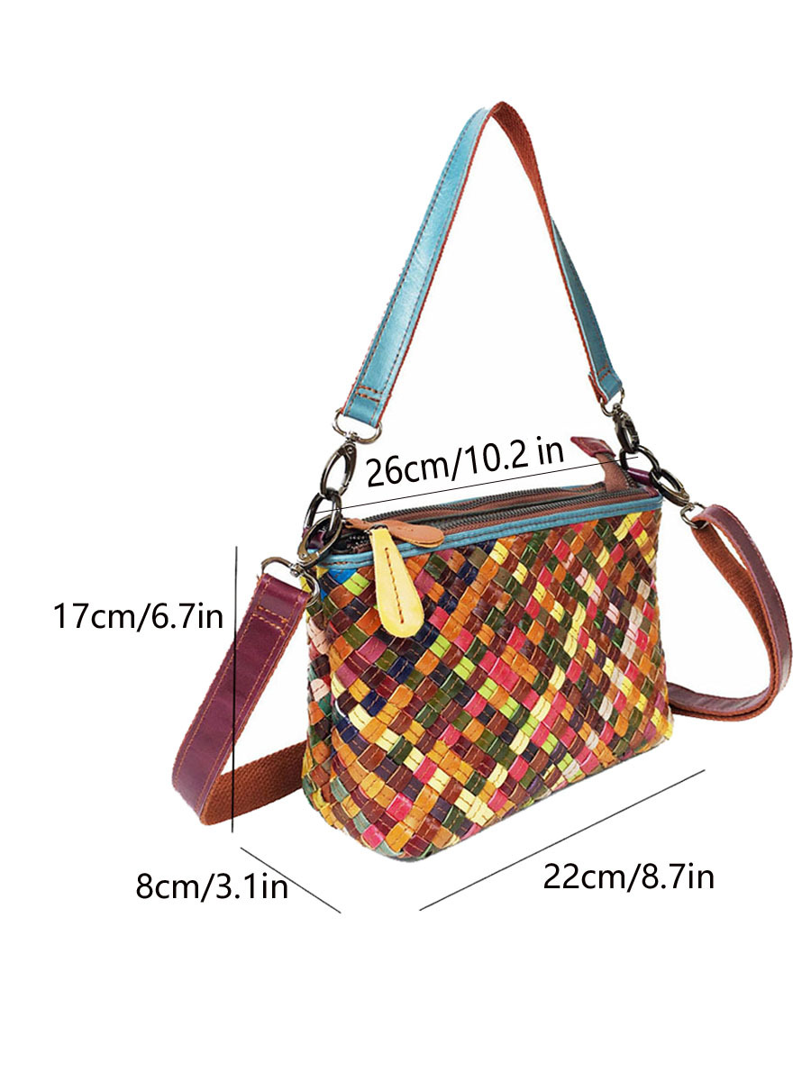 Women Colorblocking Hand Woven Leather Crossbody Bag