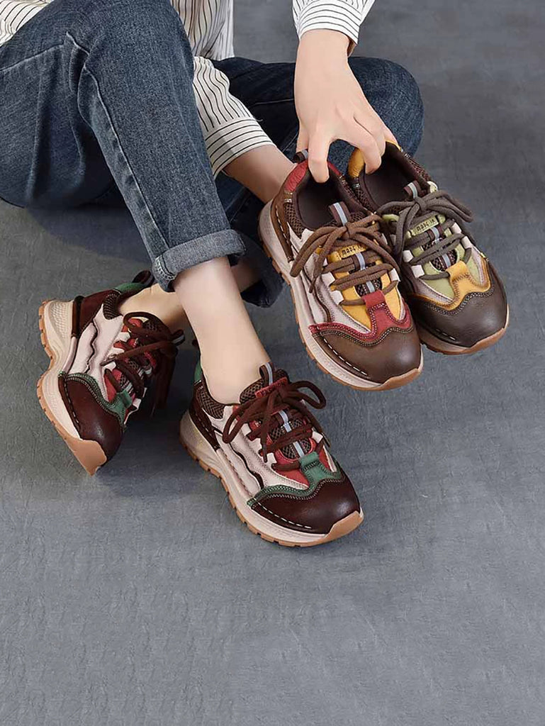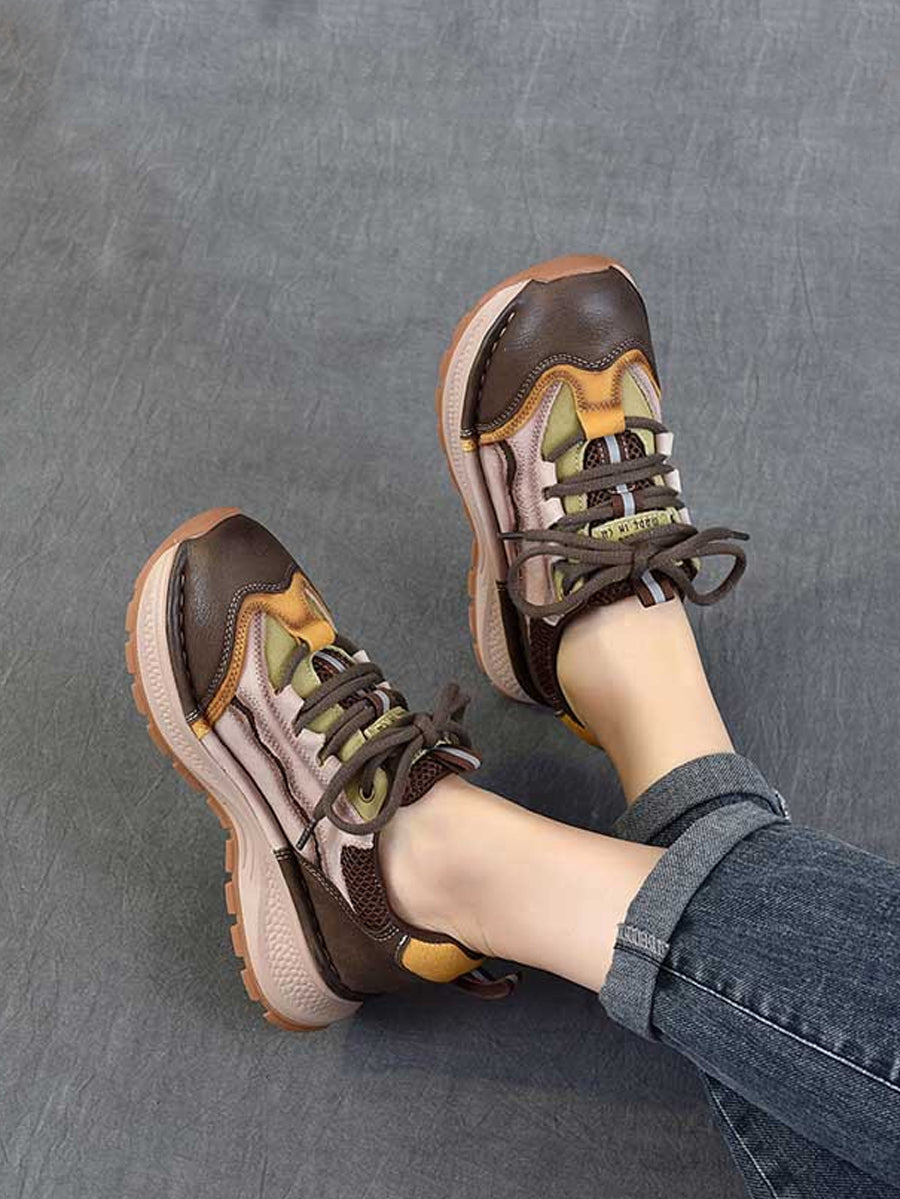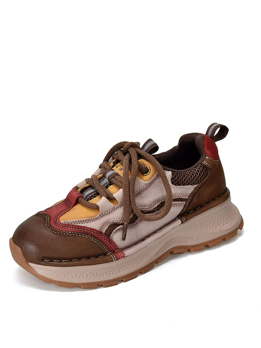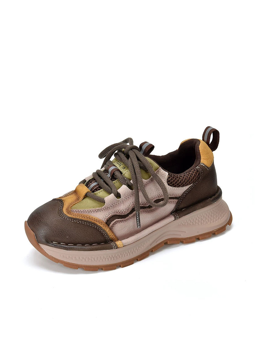 Women Retro Colorblock Leather Sport Platform Shoes