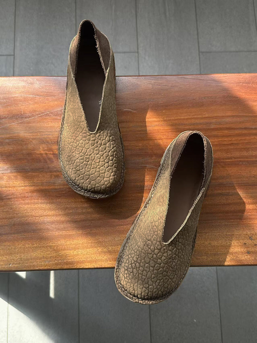 Women Retro Genuine Leather Spliced Flat Shoes
