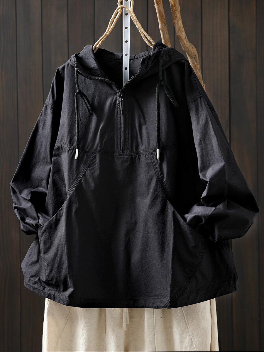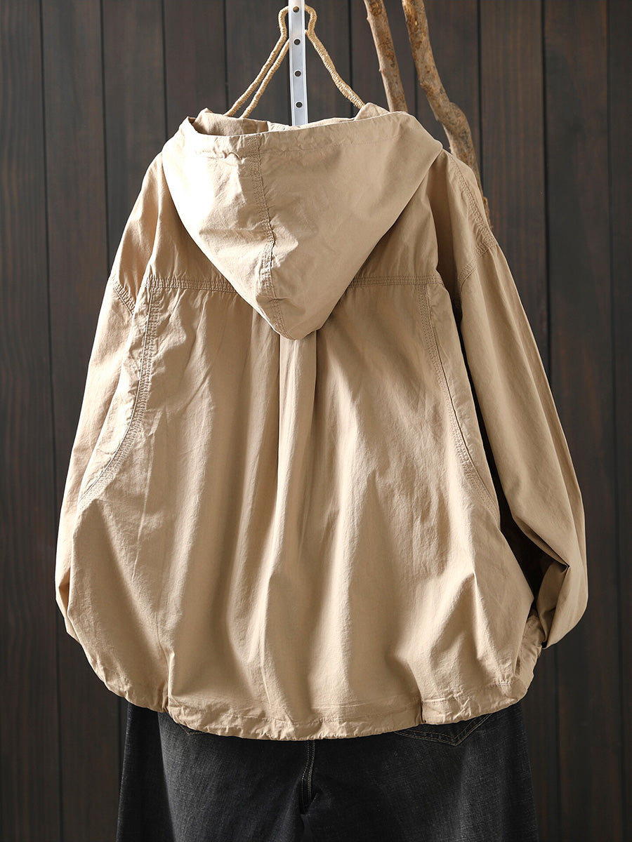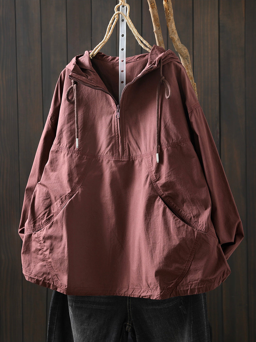 Women Spring Artsy Cotton Pure Color Hoodie