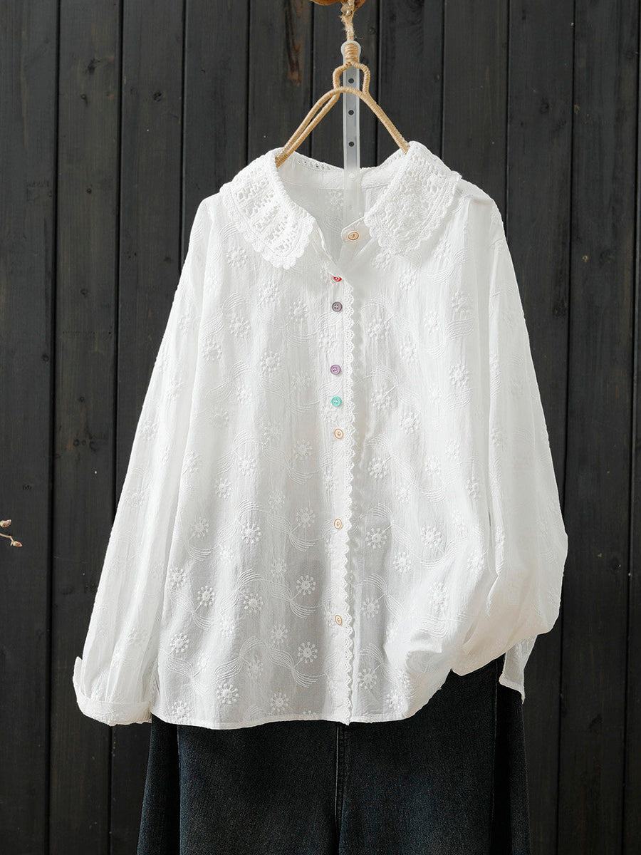 Women Spring Artsy Embroidery 100%Cotton Shirt