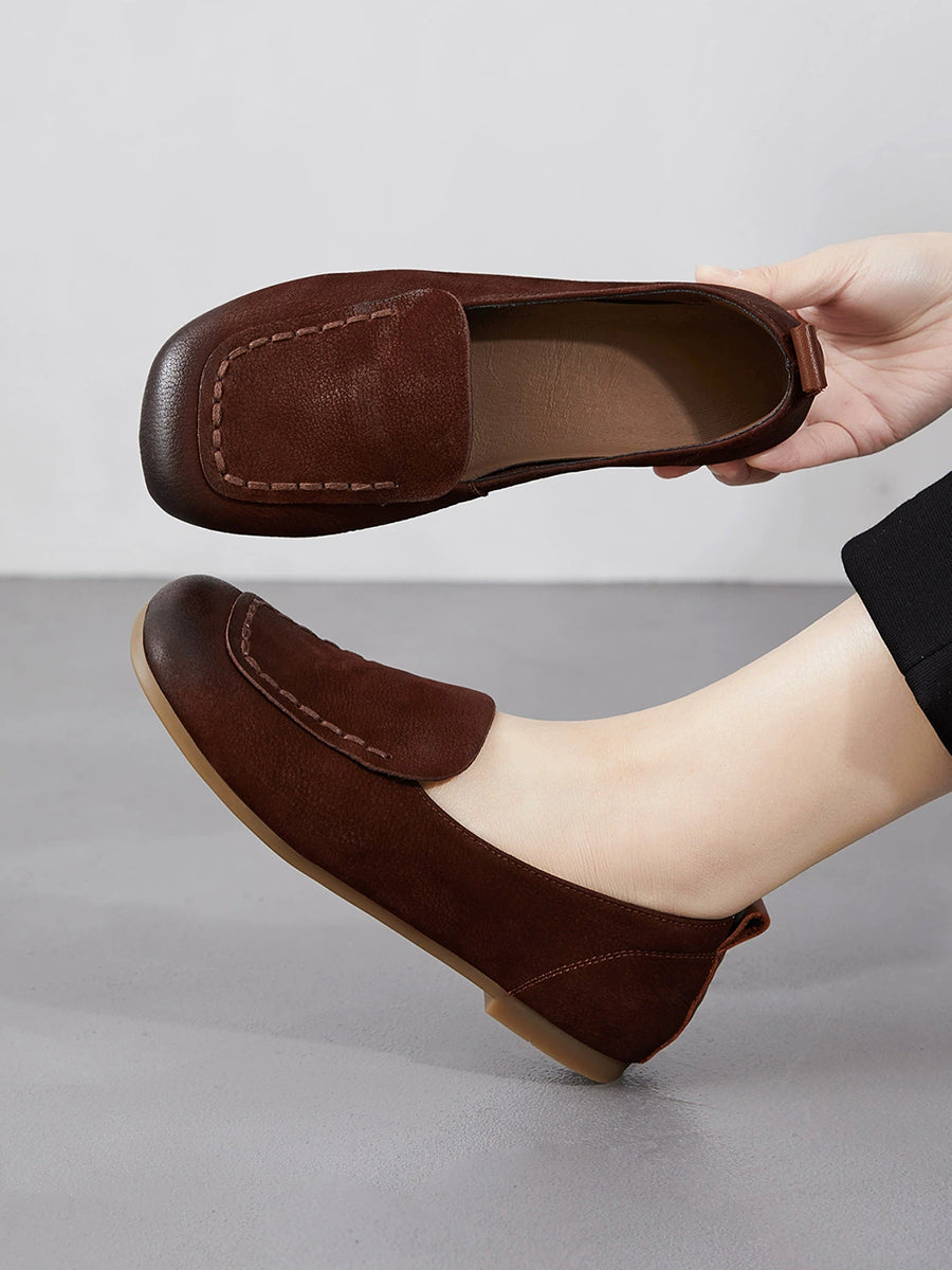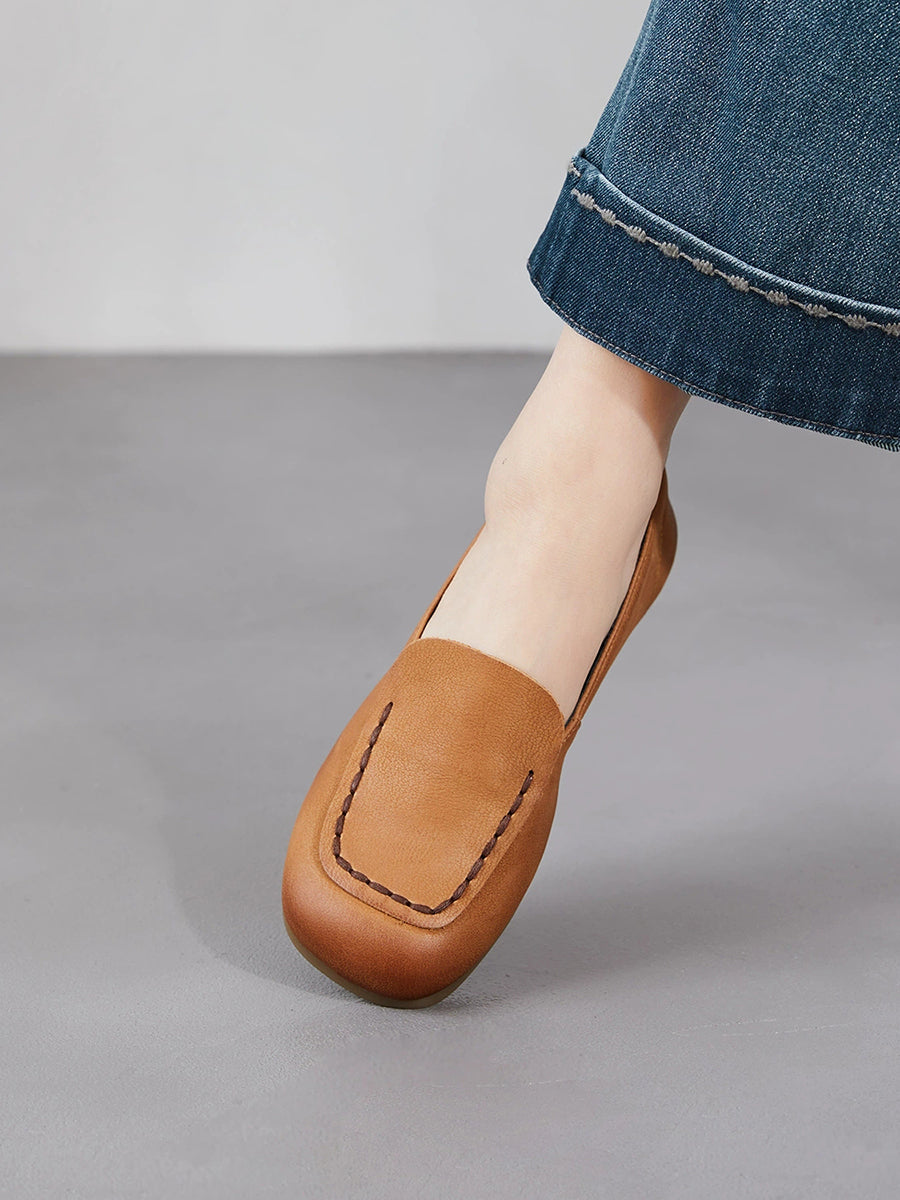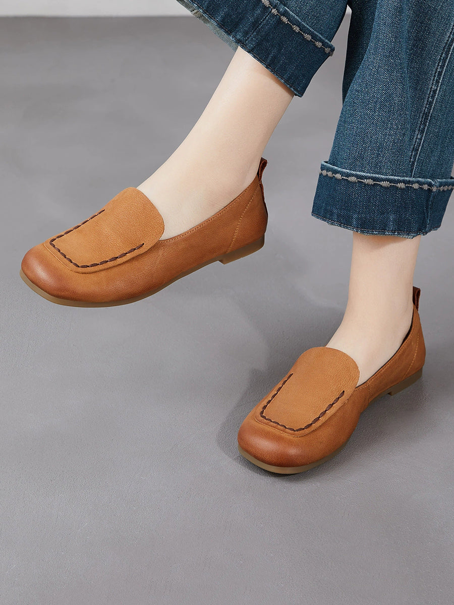 Women Spring Geuine Leather Spliced Square Toe Shoes