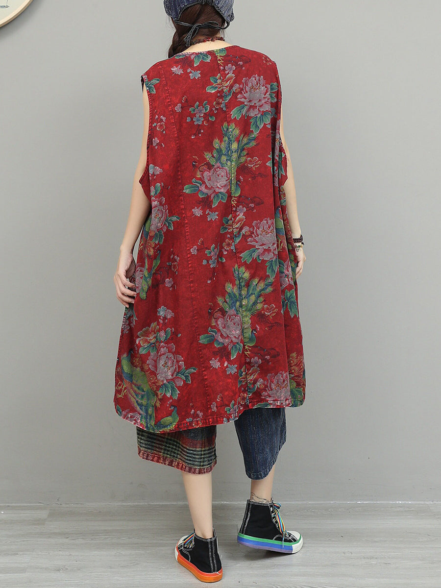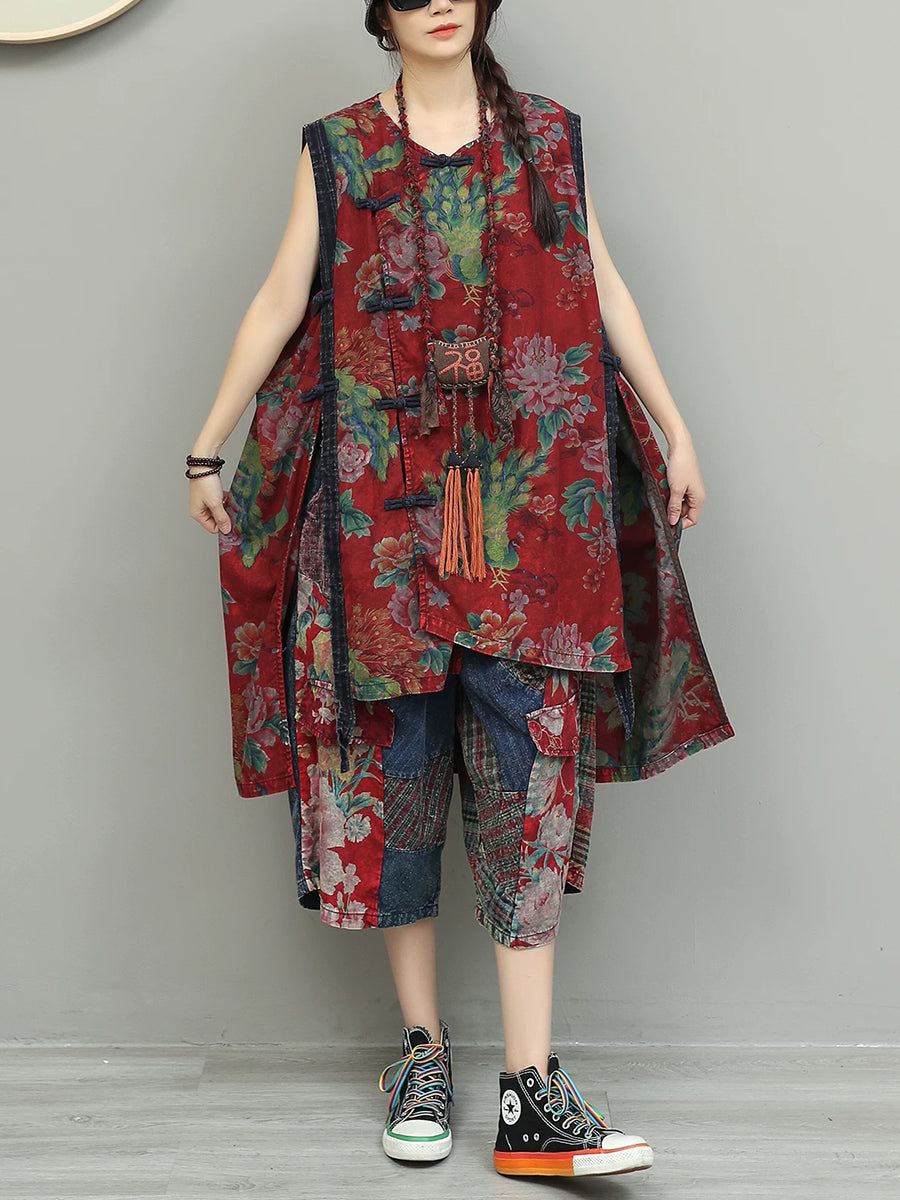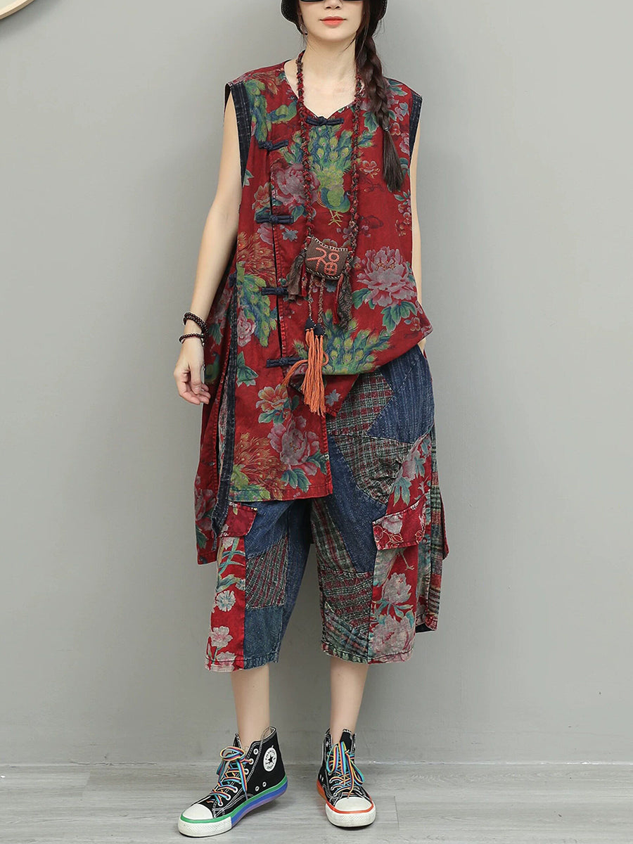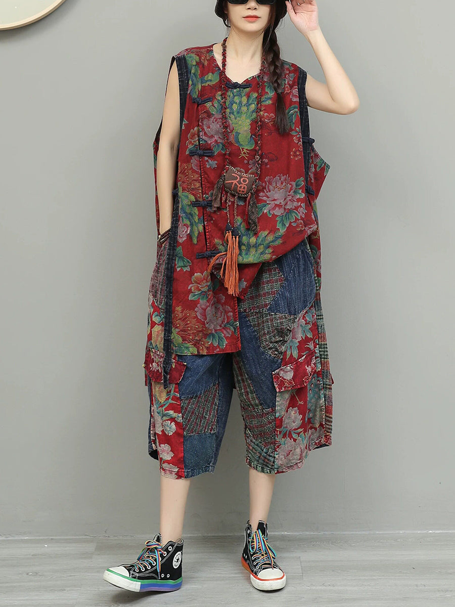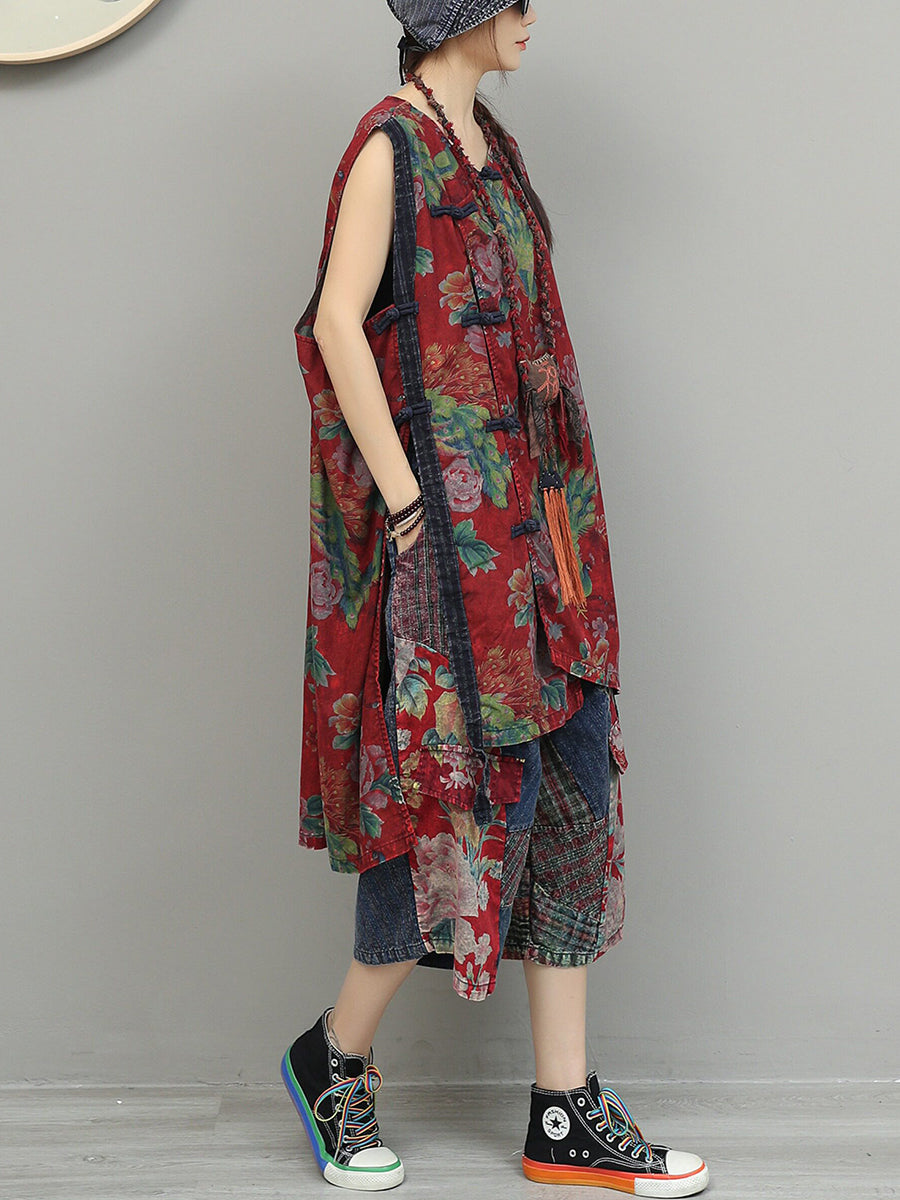 Women Summer Ethnic Flower Patchwork Suits