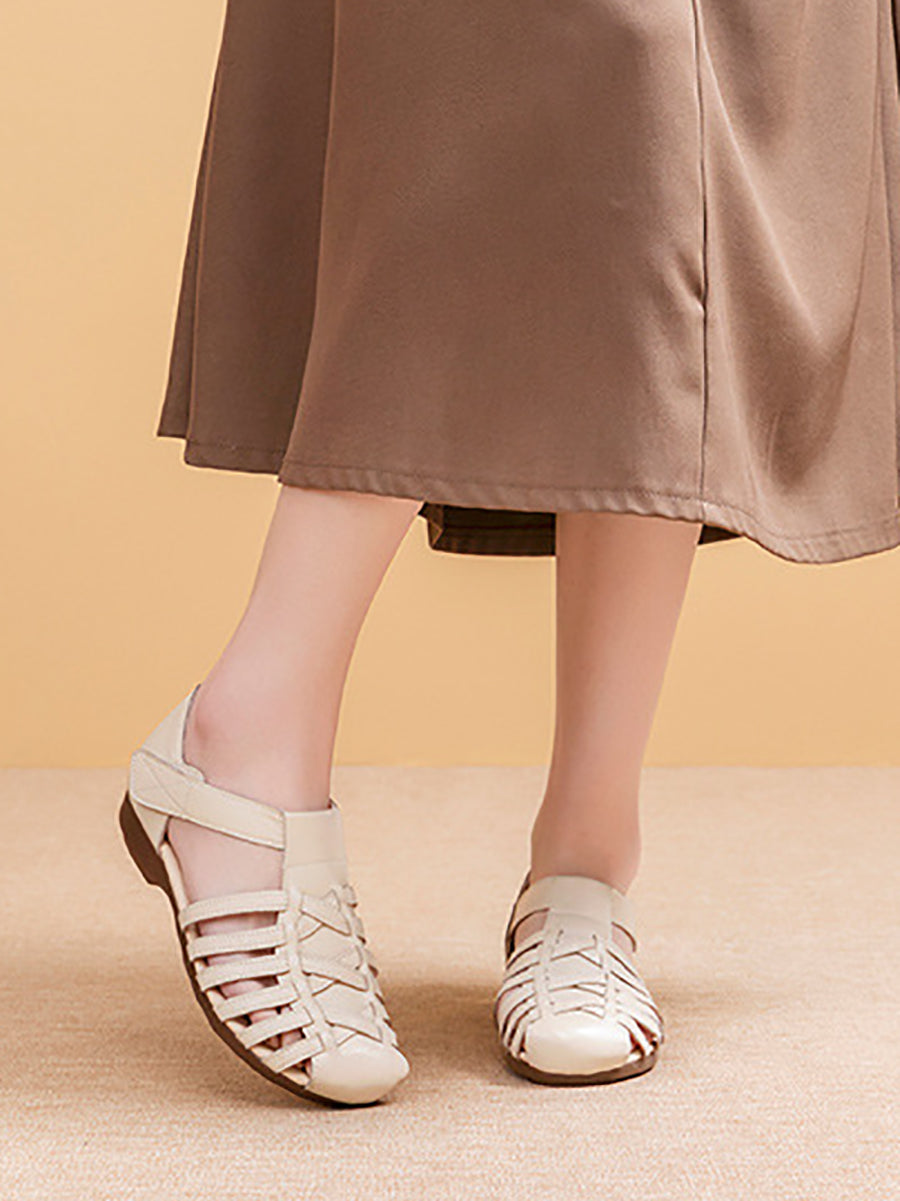 Women Summer Genuine Leather Weave Low Heel Sandals