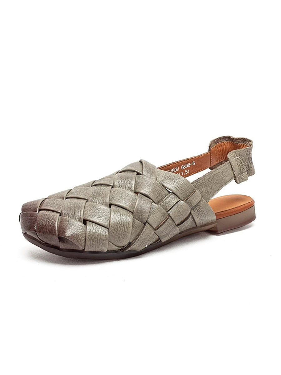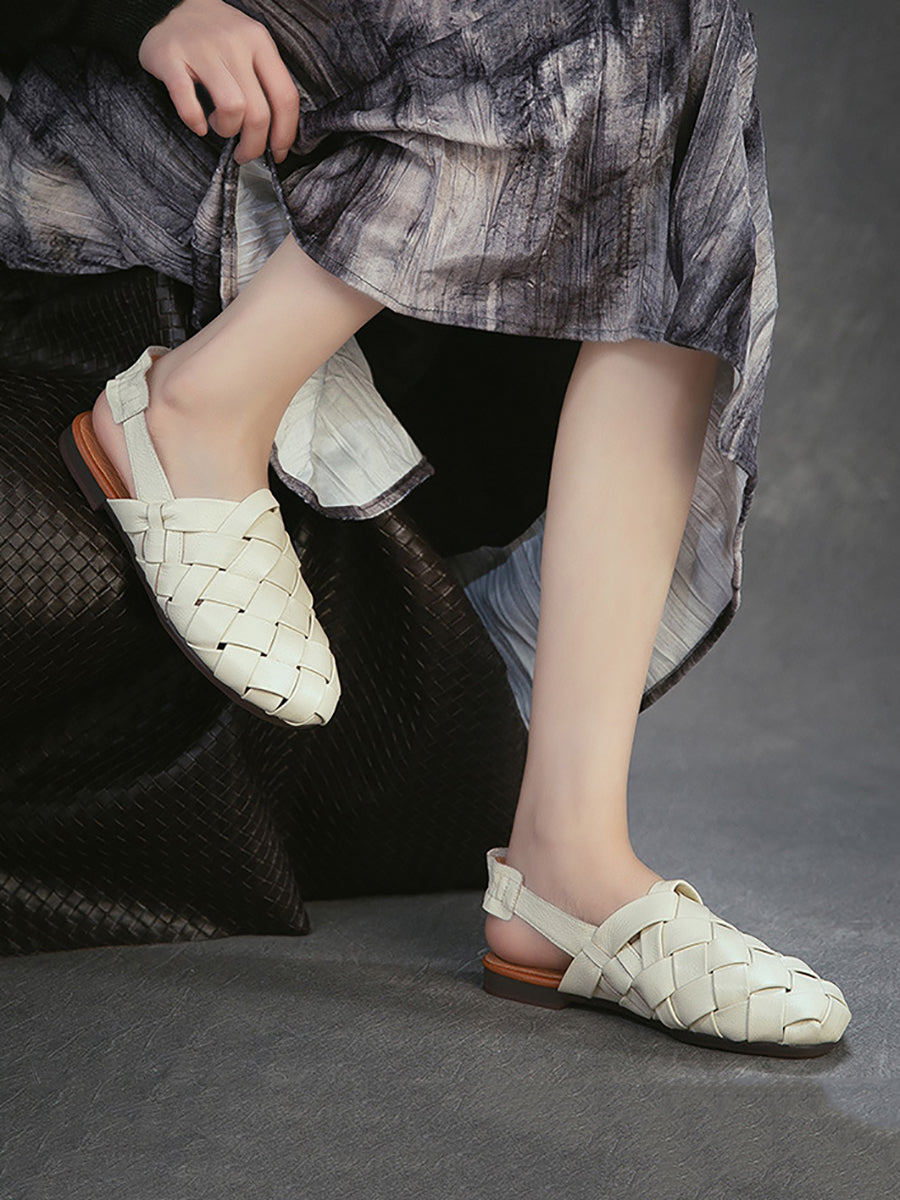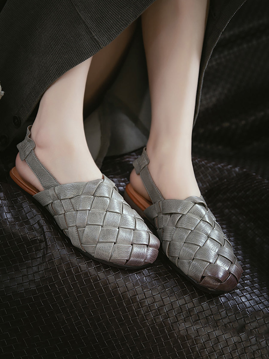 Women Summer Genuine Leather Weave Sandals